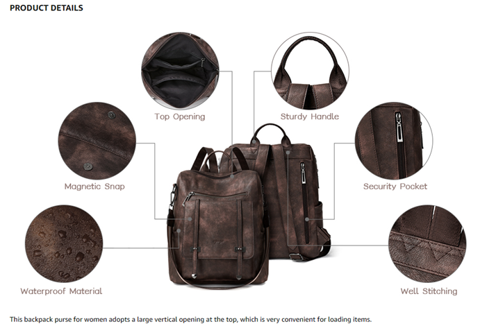【HIGH-QUALITY MATERIAL】The backpack purse for women is made of sturdy and soft PU leather, zippers slide nicely and straps are very durable, comfortable and good quality. The snaps are magnetic and all the stitching has been done well.