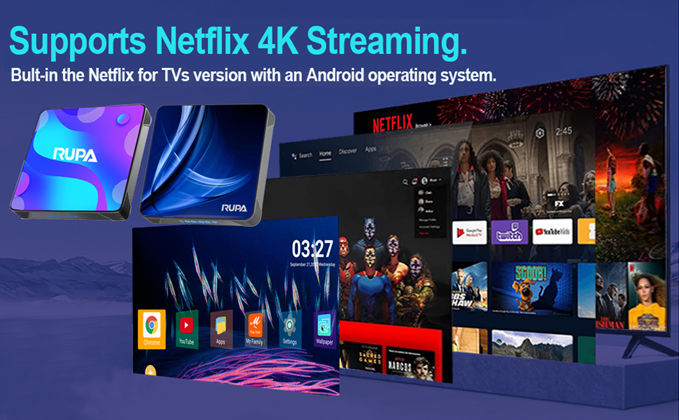- Resolutions—The Android box 2022 supports 4K, but please confirm that if your TV supports 4K resolution or not and 4K Video source. And the Netfli only supports 720P, Prime Video only supports 1080P for android tv boxes.
