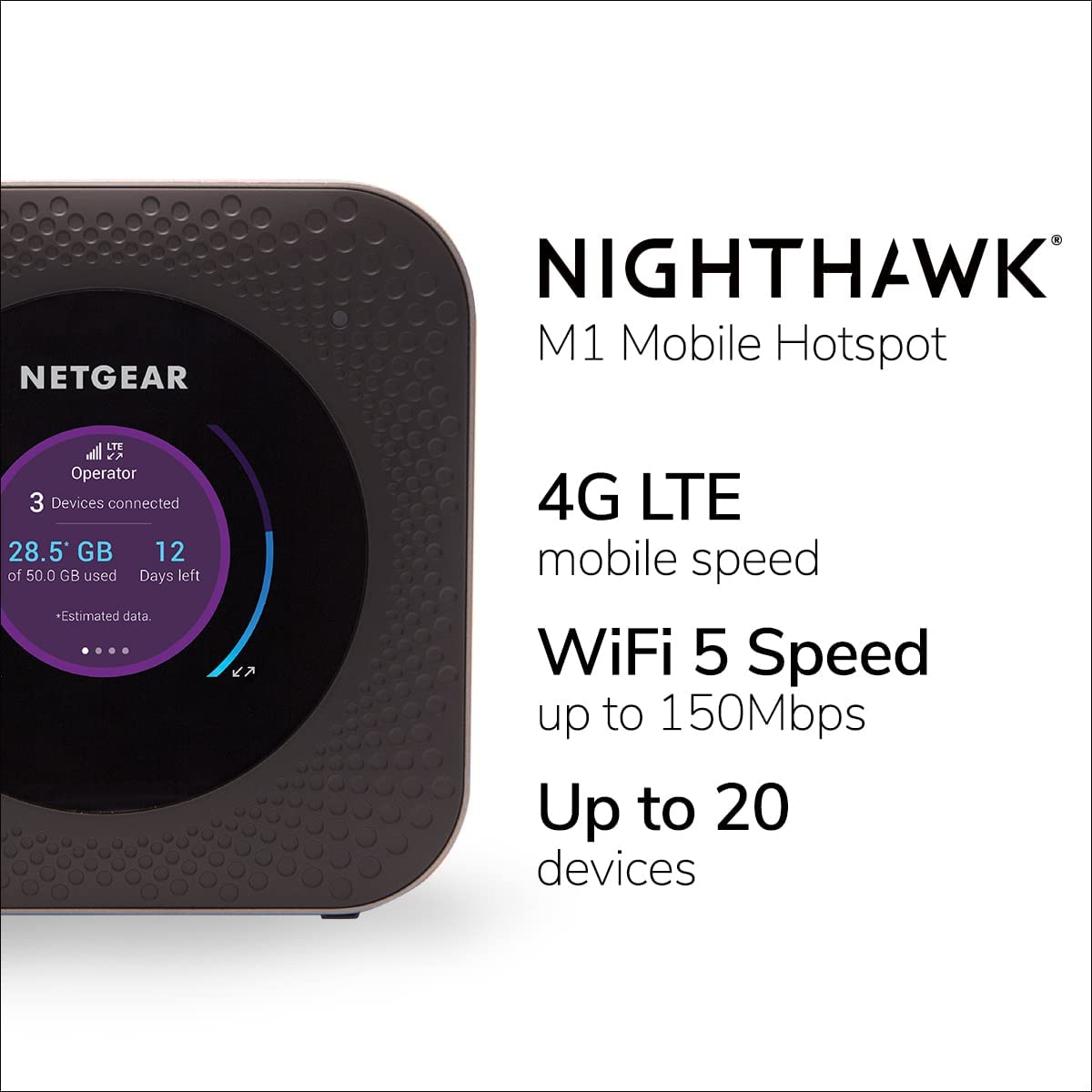 The NETGEAR Nighthawk mobile hotspot router is the world's first commercial gigabit class LTE mobile hotspot router to achieve maximum download speeds of 1Gbps It combines ultrafast download speeds support for cat 16 LTE advanced and 4 band carrier aggregation providing the best Internet connection possible while on the go or at home - Max 1 Gbps download speeds and 150 Mbps upload speeds - LTE CAT 16 4-band CA and 4x4 MIMO - LTE/4G Bands 1 2 3 4 5 7 12 14 29 30 66 - 3G Bands 2 4 5 - Full Dual-Band/Dual-Concurrent WiFi - WiFi 802 11 a/b/g/n/ac - 2 4” LCD panel - 5040mAh battery - Ethernet Port - USB-C Port - Dual TS-9 external 3G/4G antennas connectors. Refer instruction manual for troubleshooting. T-Mobile in the US has gone through some recent changes when it comes to their plans and as a result of those changes, some users may find themselves not being able to have their MR1100 Nighthawk M1 Mobile Router connect to the T-Mobile network. If you find that you are no longer able to connect to your MR1100 Mobile Router to the T-Mobile Network, please contact your T-Mobile support and ensure that your device is on the correct plan for mobile hot spots.