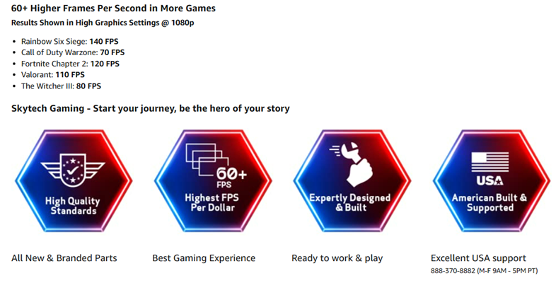 Why settle for mediocrity? Leap forward into Blaze 3.0 series with the newest architectures. Featuring the RX graphics technology and powered by Intel core i5 Processor, the Blaze 3.0 delivers the best price-to-value gaming rig in the market.The Skytech Blaze 3.0 offers the best gaming computer built up to date to easily run popular games such as Call of Duty Warzone, Fornite, Escape from Tarkov, Grand Theft Auto V, Valorant, World of Warcraft, League of Legends, Apex Legends, Roblox, PLAYERUNKNOWN’s Battlegrounds, Overwatch, Counter-Strike: Global Offensive, Battlefield V, New World, Minecraft, Elden Ring, Rocket League, The Division 2, and more at Ultra settings, detailed 1080p Full HD resolution and smooth 60+ FPS gameplay.SPECIFICATIONSProcessor:Intel Core i5-10400F CPU ProcessorMemory:16G DDR4 Gaming MemoryVideo Card:AMD RX 6600 XT (Brand may vary)SSD: 1TB Internal Solid State DriveOperating System: Microsoft Windows 11 Home 64-bitCase:Phantek Metallic Gear Neo Air, White Edition with Front Mesh CasePower Supply:600 Watt 80 PLUS GOLD Certified Power SupplyWiFi:802.11ACFans: Built-in 3 x RGB FansProduct images used on this page are for illustrative purposes only and are not indicative of the exact components used at the time of manufacture. Component makes and models may vary from depictions of the product in product images but will adhere to the specification outlined in the main description of the product. Particulars such as I / O ports may vary.