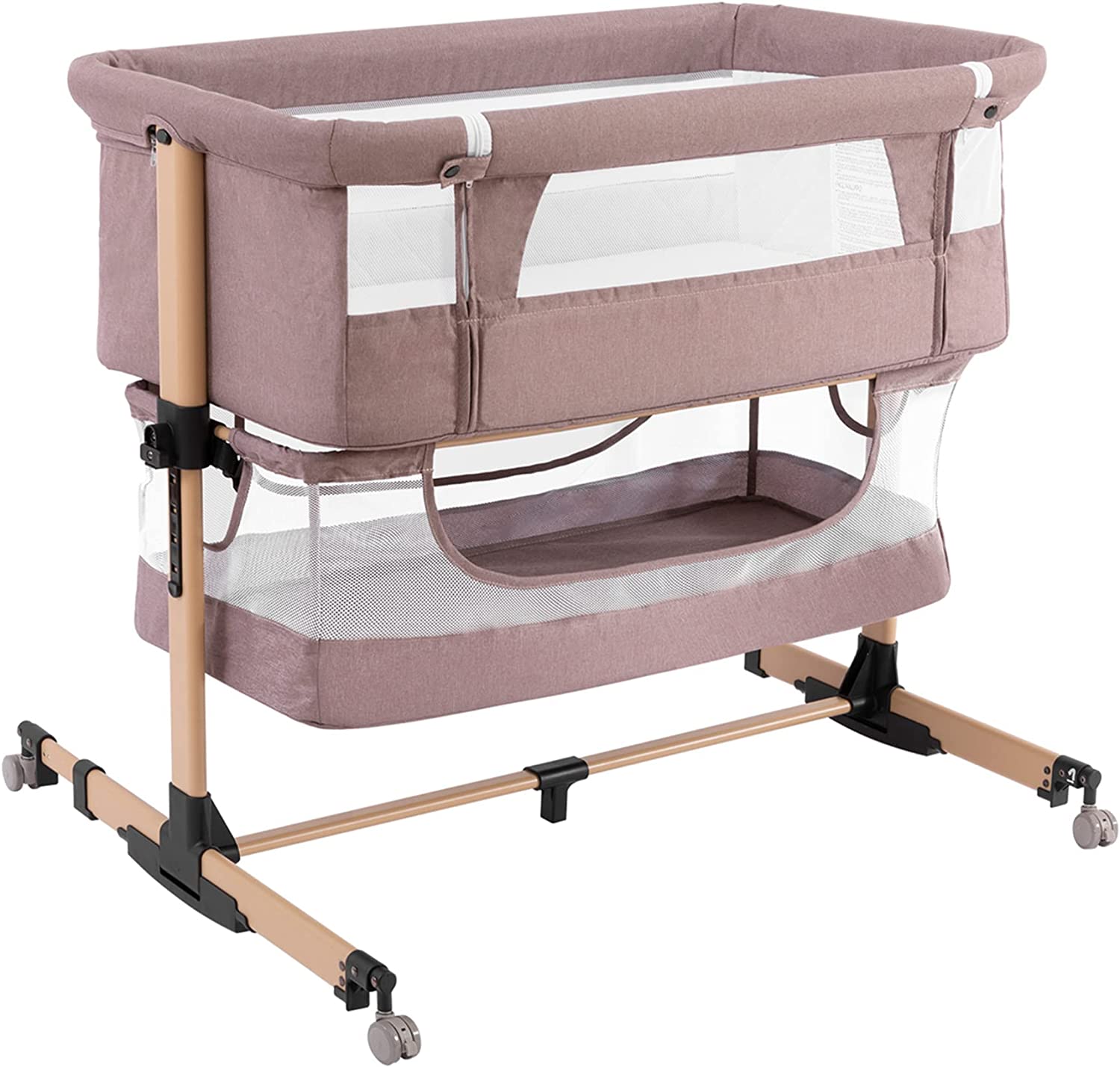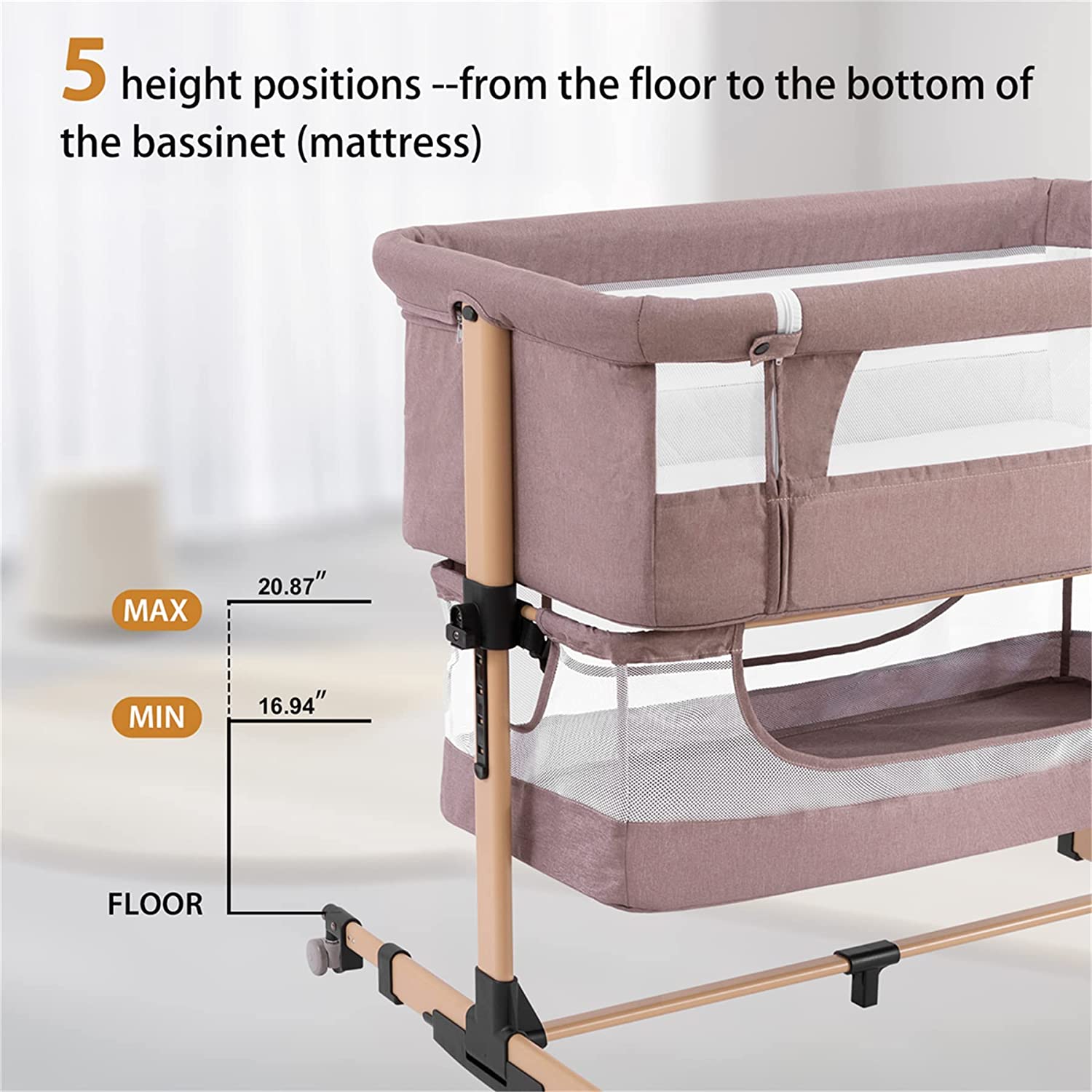 Multifunctional use:used as a baby crib or bedside sleeper attached to adult bed,Simply roll down the co-sleep side and latch it to your bed;raised unilaterally to prevent the baby from spilling milk;change to Bassinet mode,use as a bassinets