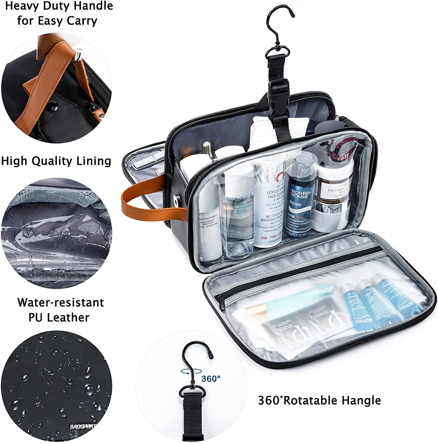 BAGSPRITE Toiletry Bag for Men, Travel Bag for Toiletries, Mens Toiletry Bag Shaving Dopp Kit Organizer, Large Water-resistant Travel Bathroom Bag for Traveling, Black/Brown