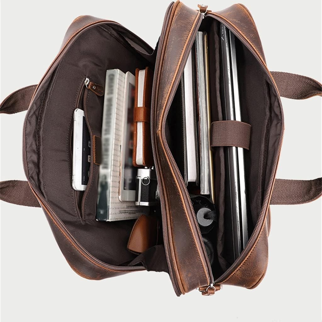 XFGDE Leather Briefcase for Man Crazy Horse Leather 17 inch Laptop Business Handbag Cowhide Male Tote Big Shouler Bags (Color : Black)