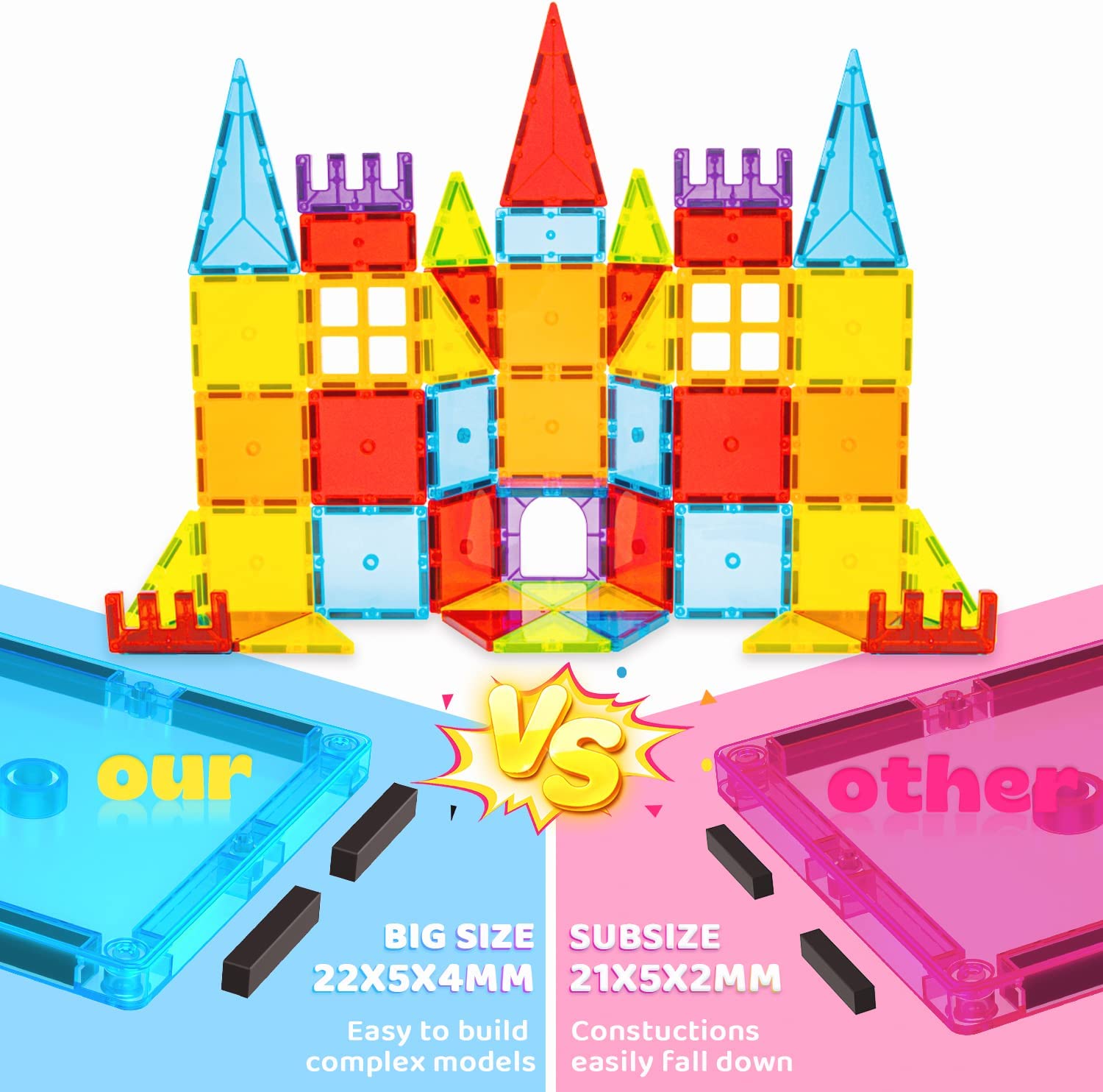 Magnet Toys for Kids, Magnetic Tiles Stacking Building Blocks, Learning & Education Montessori Toys for 3+ Year Old Boys and Girls, Preschool STEM Toys for Age 3-5 Christmas Birthday Gift for Toddlers