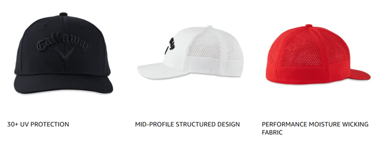 Four-way stretch performance moisture wicking tech fabric with laser perforated venting and cooling X-SPANN sweatband keep you dry in this fitted mid-profile structured design.