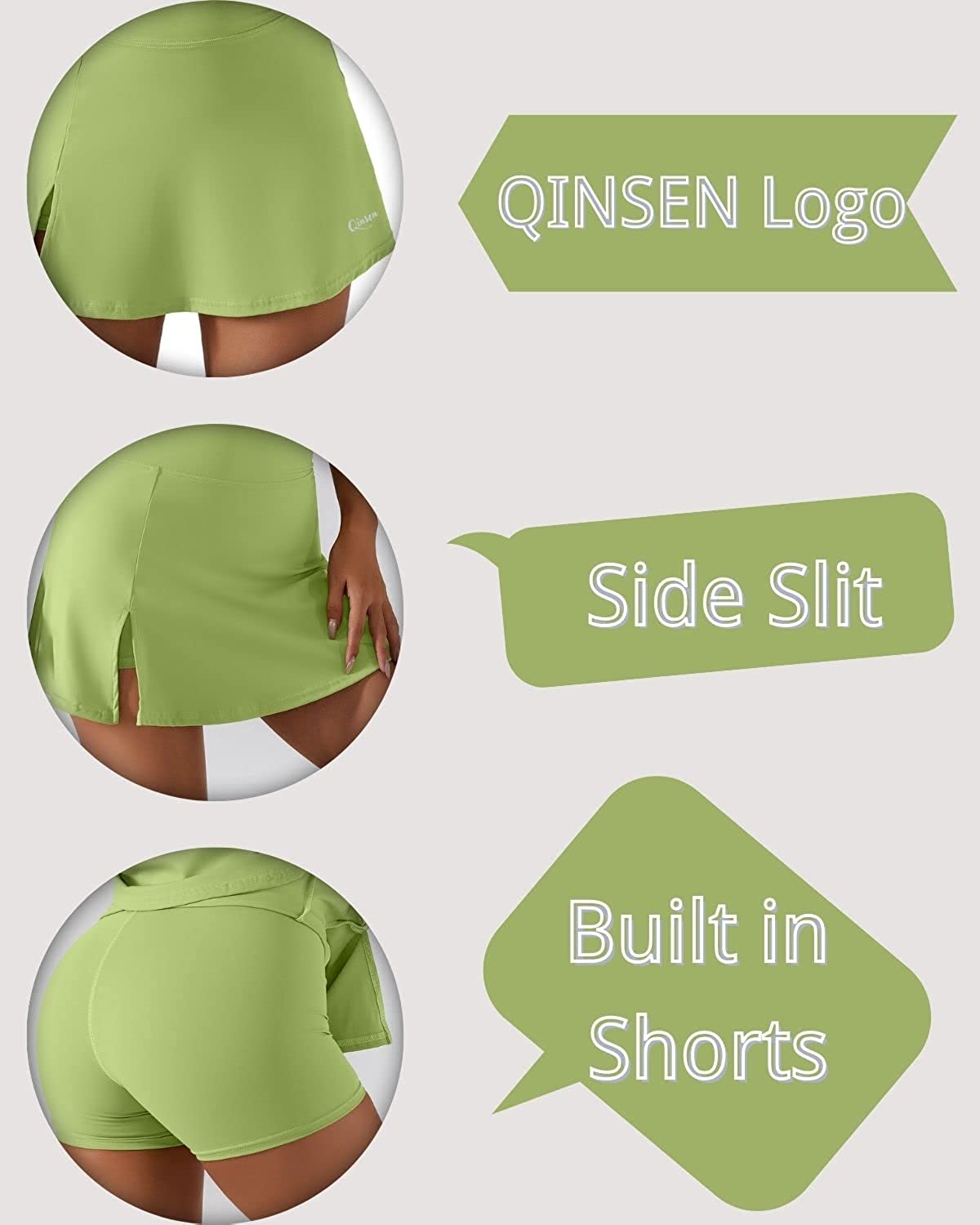 QINSEN Women's Tennis Skirts Stretch High Waisted Golf Skorts Running Sports Workout Activewear