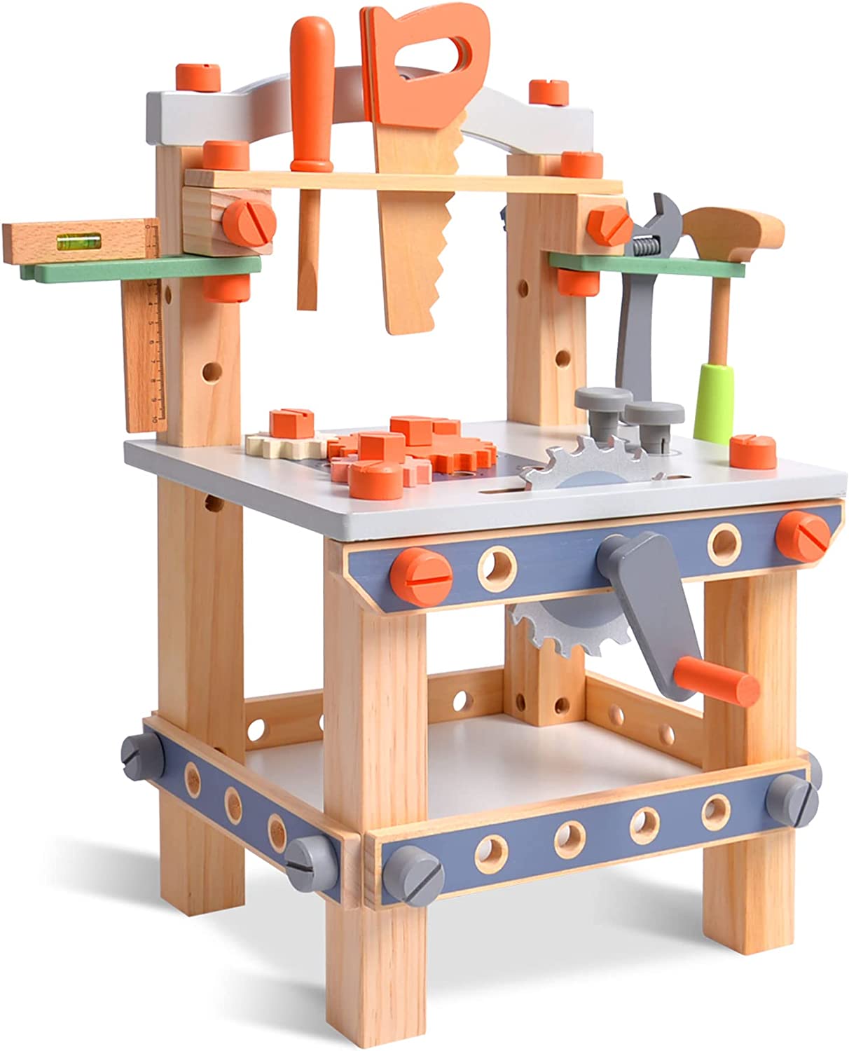 ⭐[Material and Quality]- Made of solid wood. Grinding irregular edges and corners, ensure no edges and corners and burrs, protect children's skin, let children play at ease, adults are also more at ease. kids tool bench.