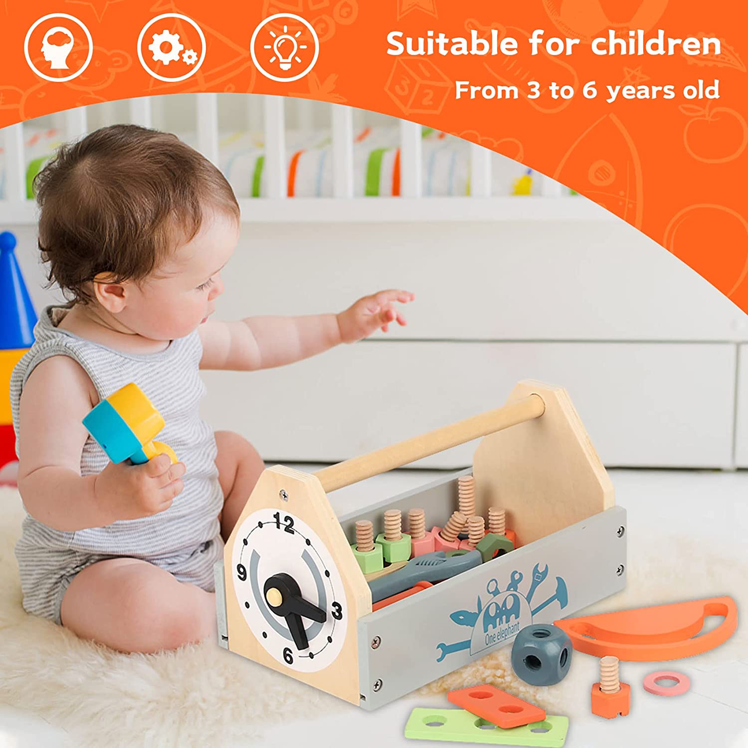 PETKABOO Kids Workbench Set,Toddler Tool Set,Mini Wooden Play Tool,Screw and nut disassembly to Enhance Children's Thinking and Operational Ability. Gifts for 3 Kids,Toddler