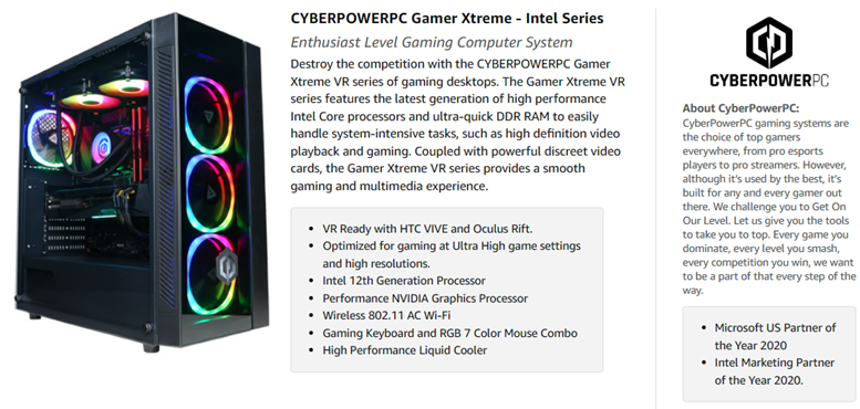 CYBERRPOWERPC Gamer Xtreme VR Gaming PC, Intel Core i7-12700KF 3.6GHz, GeForce RTX 3060 12GB, 16GB DDR4, 500GB PCI-E NVMe SSD, 2TB HDD, WiFi Ready & Win 11 Home (GXiVR8400A10), Black