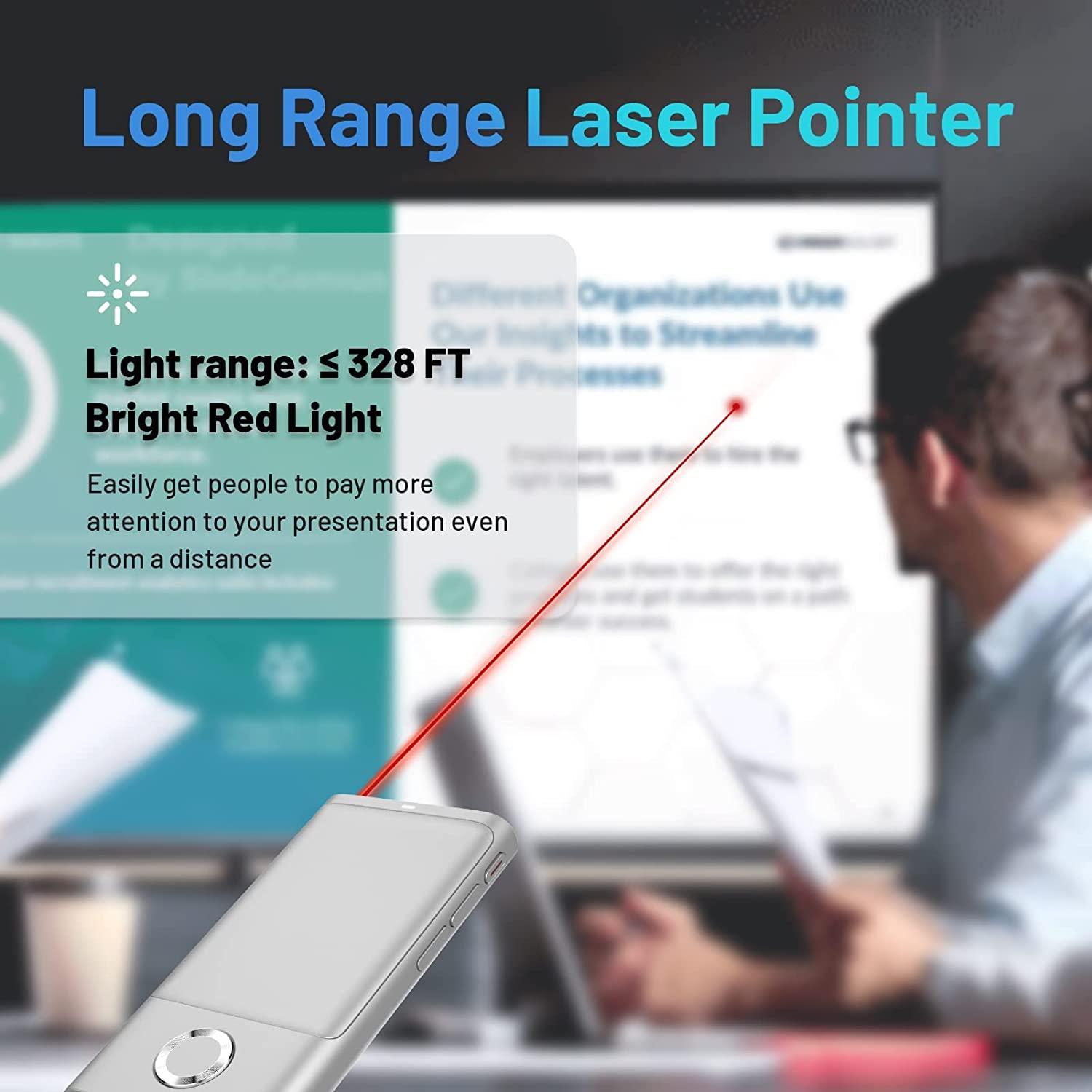 • 【Long Range Laser Pointer 】By pressing the Home Button, the presentation clicker can easily release an intense red laser to attract more attention to your presentations and lectures. (Light range: ≤ 328 FT).