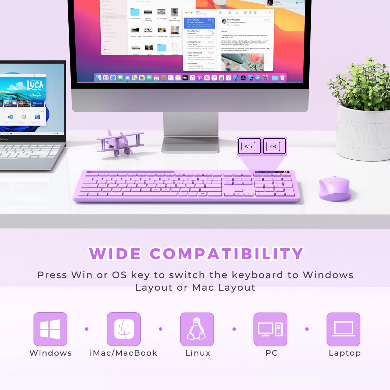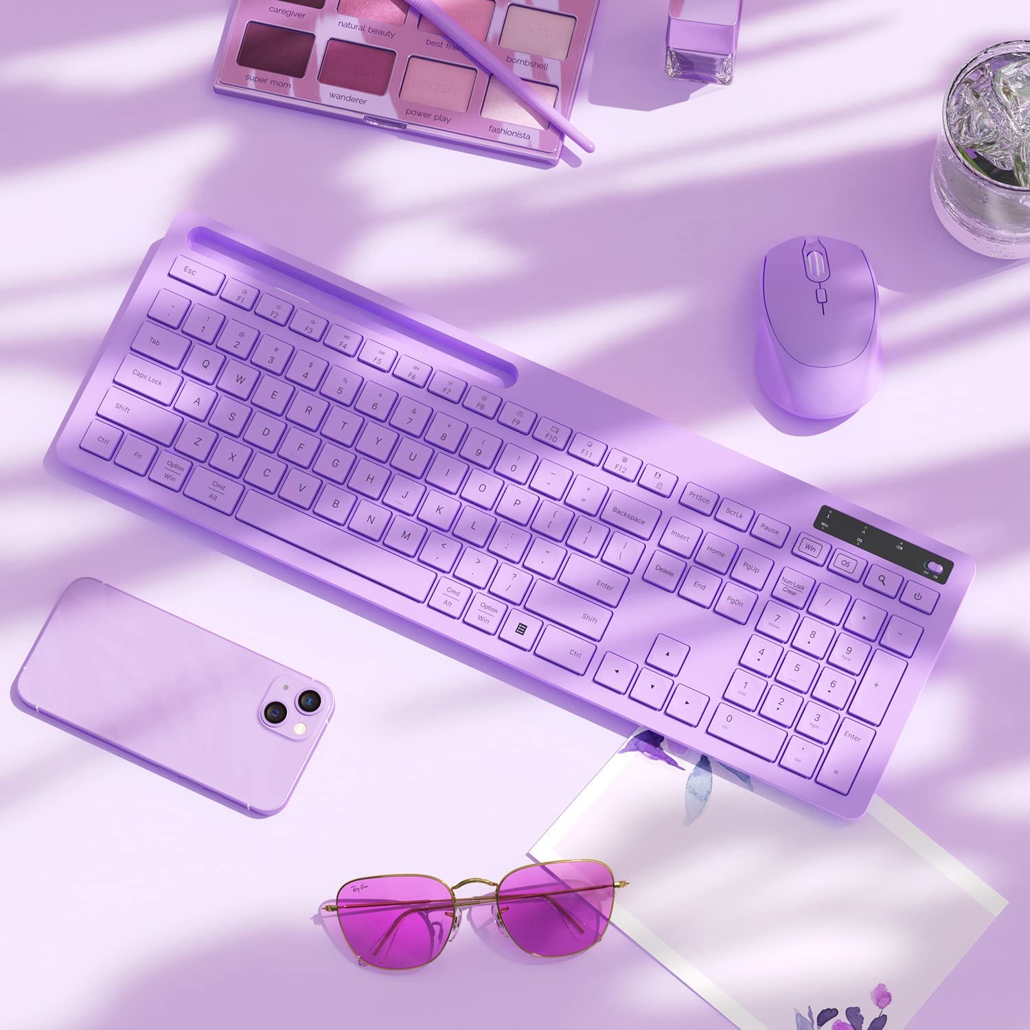 - Productive and Aesthetic -- Improve your computing experience throughout the day with the responsive and well-shaped keys of the purple wireless keyboard. Refresh your workspace with the modern contours and sleek lines in a romantic peach taro purple color, the cute keyboard and mouse will be a fantastic ornament to complement a lovely and contemporary desktop!