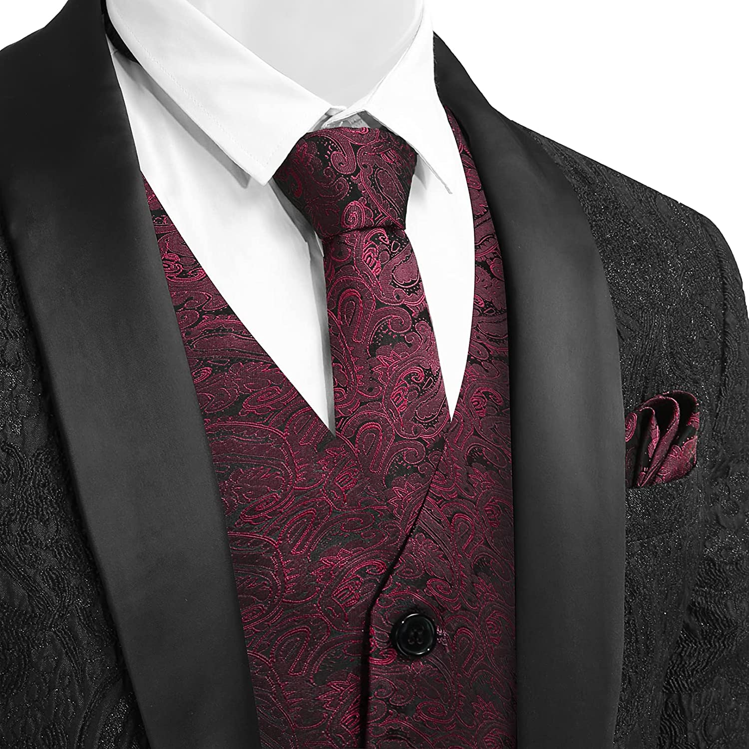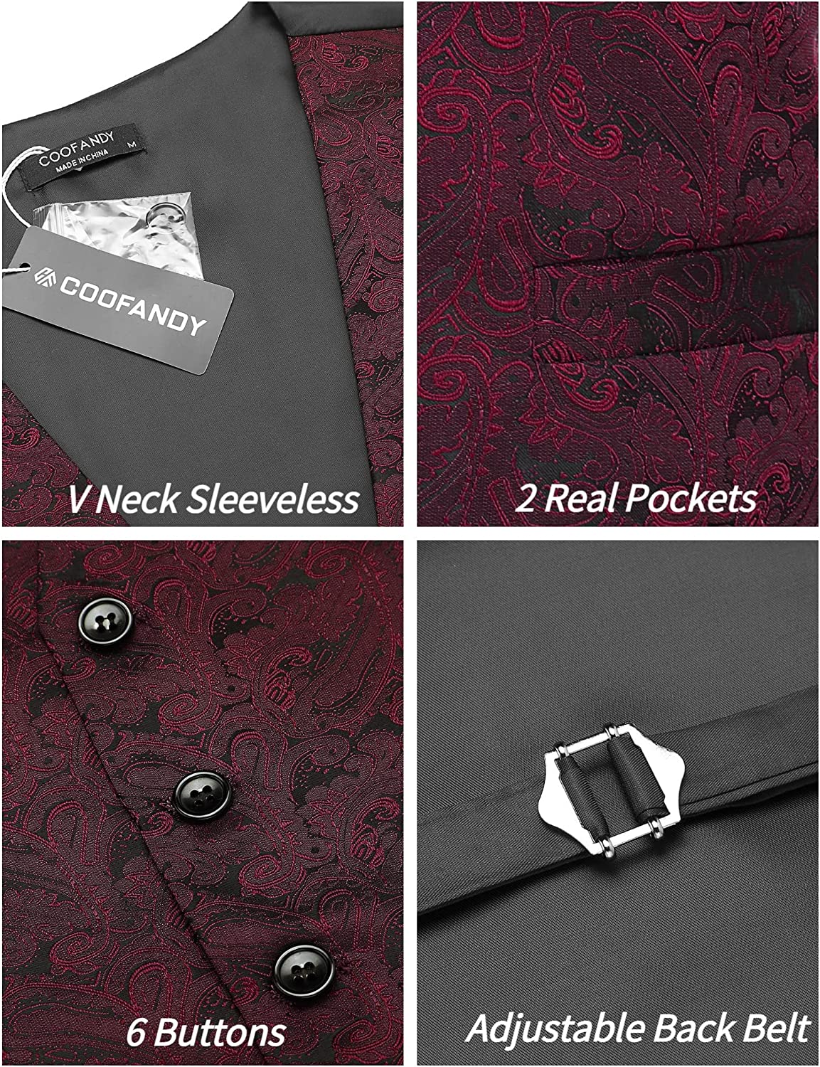 COOFANDY Men's Paisley Vest Tie Set Formal 4PC Suit Vest