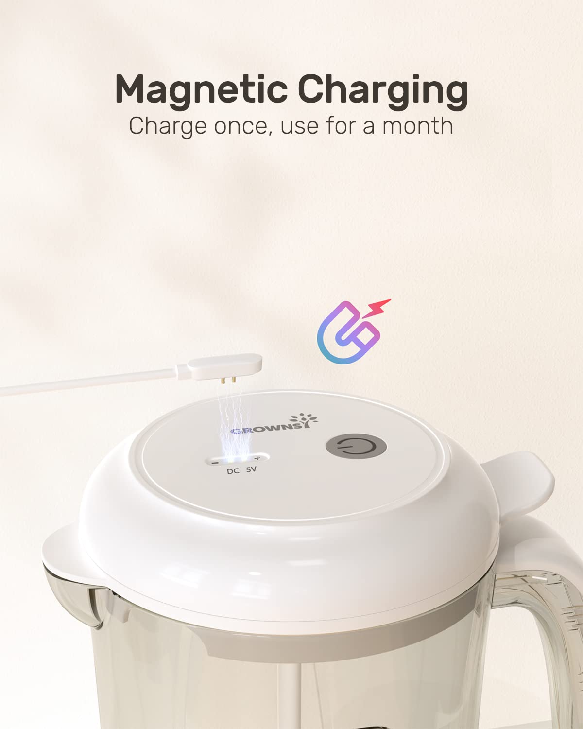 ?【 Magnetic Charging, Perfect for Travel 】 Grownsy Breastmilk pitcher is equipped with charging line, baby travel essential, automatic stop after 2 minutes of mixing, does not affect mom coax the baby, is a good helper for parents, compact size is perfect for travel.