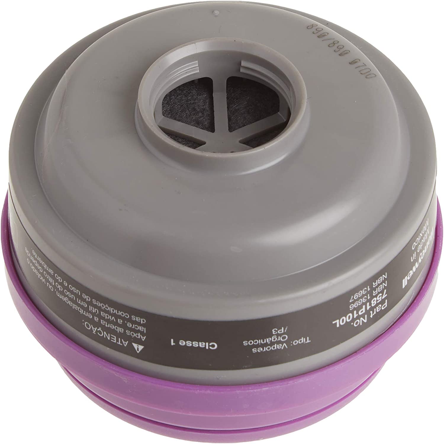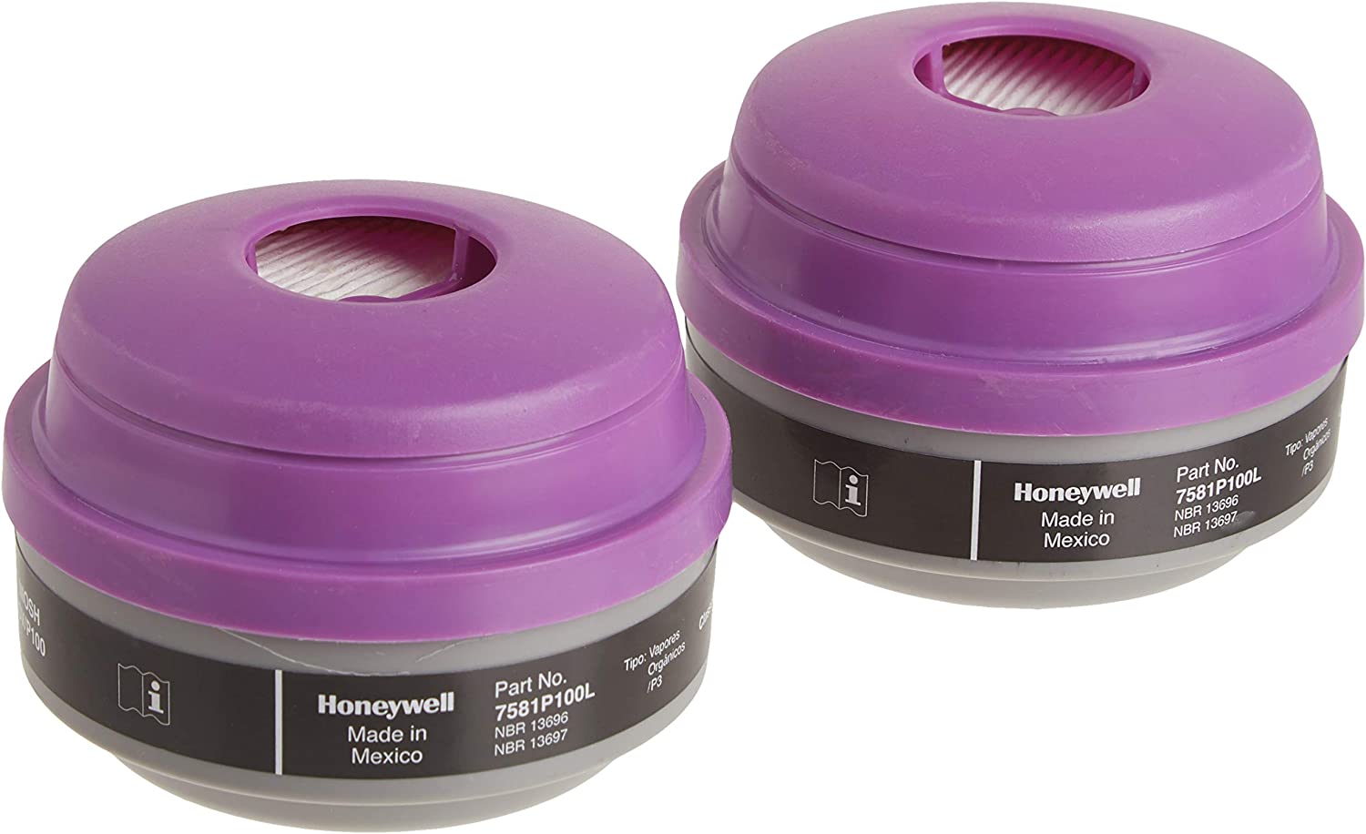 Honeywell Home 760008A North Safety Products, 7600 Series Full Facepiece Respirator, Dual Cartridge, Medium/LargeThis Honeywell North 7600 Series Full Facepiece Silicone Respirator offers premium safety, comfort and performance. It delivers strong protection against particulates, dusts, fumes, mists, organic vapors, acid gases & other contaminants, and is compatible with our full range of cartridges, filters & cartridge/filter combinations to suit almost any work environment. In addition to functioning as an air purifying respirator (APR), the 7600 model also features front and side mounts for easy transition to a powered air purifying respirator (PAPR) or a continuous flow supplied air respirator (CF-SAR). A welding adaptor is also available, which eliminates the need to purchase extra gear and to switch out gear while on the job (adaptor not included). The full face respirator features a soft silicone nose cup for longwearing comfort on the job. The silicone face seal provides an excellent contaminant barrier, and the threaded cartridge connector prevents accidental disconnection. A five-point head strap option includes a center strap for quick adjusting and a more secure fit. The tough polycarbonate lens offers a wide sightlines, downward viewing, optical clarity and distortion-free vision. The ANSI-Approved lens is designed to withstand high impacts, eliminating the need for additional eye protection. Suitable for use as a paint respirator, paint spray mask, welding respirator, chemical mask and other applications.Honeywell Home 7581P100L Combo Organic Vapor and P100 Particulate Filter Cartridge,Pack of 2, black/magenta, 2.75 x 7 x 3.5North by Honeywell Cartridge filter combo offerS protection against organic vapors and particulates. Compatible with 5400, 7600, RU6500, 5500, and 7700 series air purifying respirators.