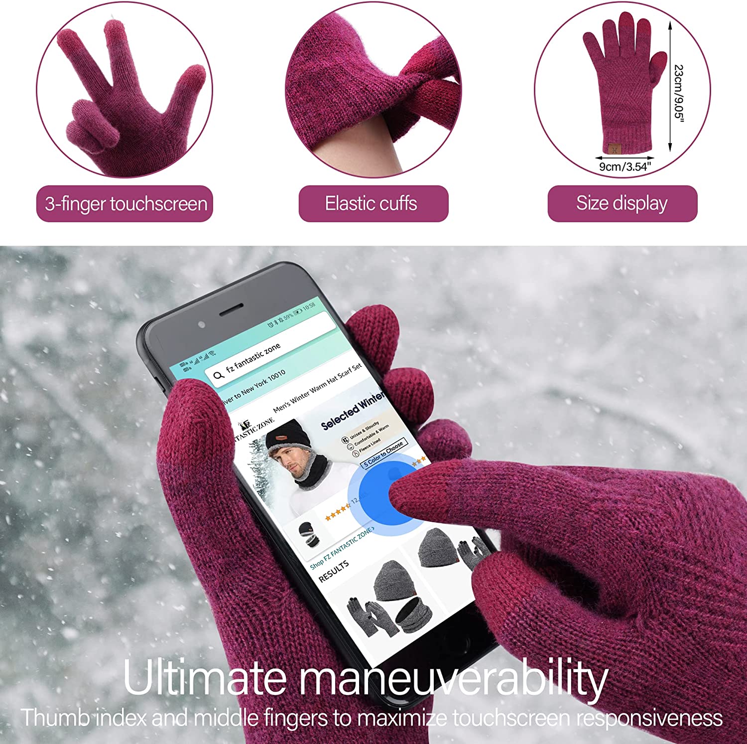 • Winter Touch Screen Gloves: Our Warm Texting Gloves have tight stitching, thick and comfortable, and elastic cuffs keep the glove close to your skin for a perfect fit in your hands. The diamond twill texture is beautiful and lovely, elegant and simple. Fingertips (thumb index and middle fingers) are made of conductive fabric, compatible with touch screen panels of smartphones, tablets, smart watches, cars, no need to worry about freezing your hands.