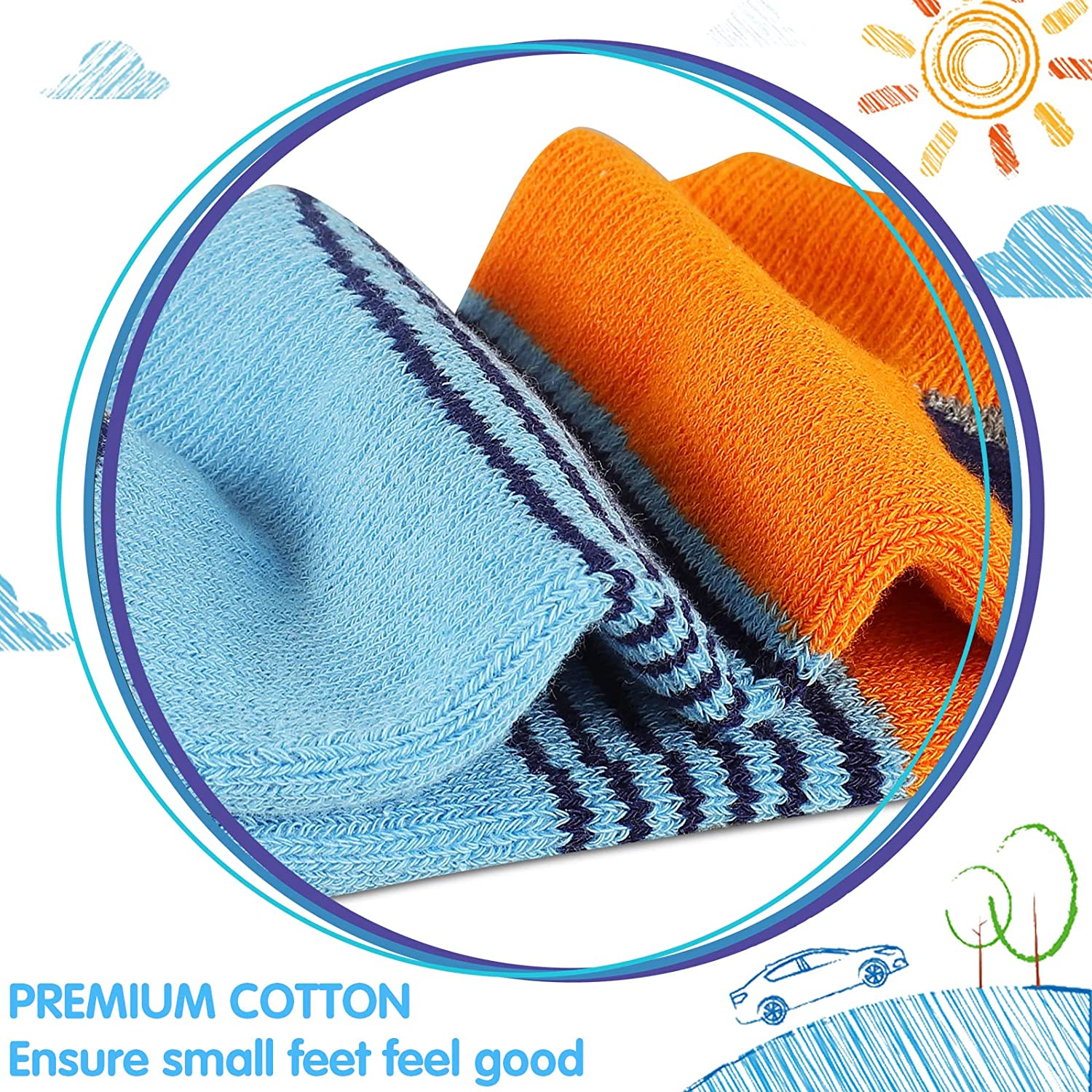 Heel TAB: Our boys socks have a thicker and higher back around ankle that prevent rubbing against your kids’ delicate skin, also the tab gives a good place for him to pull his socks on.