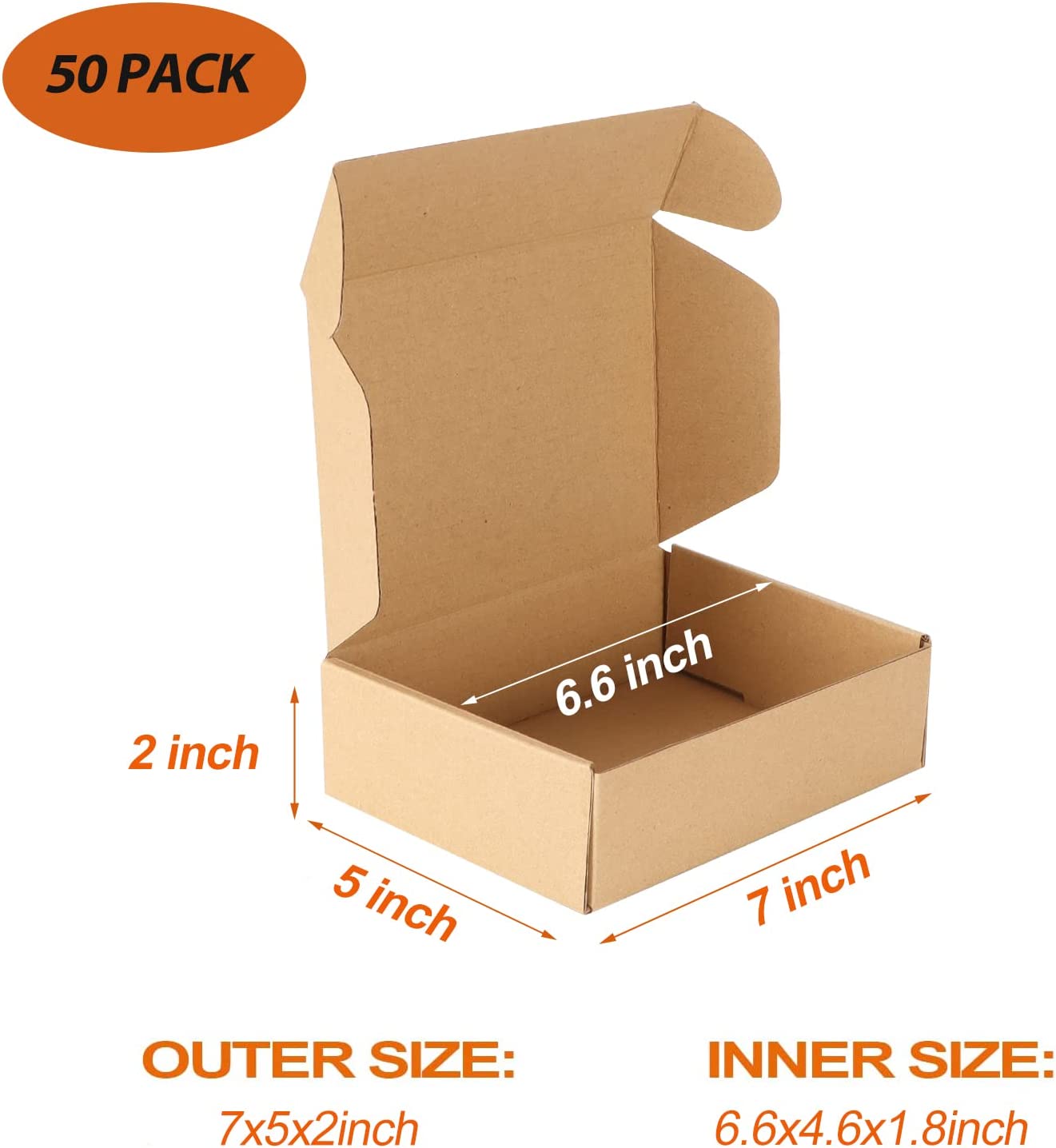 PHAREGE 7x5x2 inch Shipping Boxes 50 Pack, Brown Cardboard Gift Boxes with Lids for Wrapping Giving Women Men Presents, Small Corrugated Mailer Boxes for Packaging Mailing Small Business