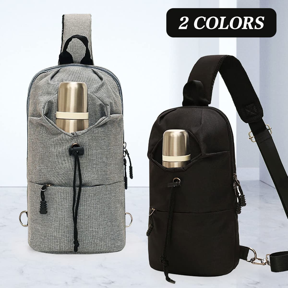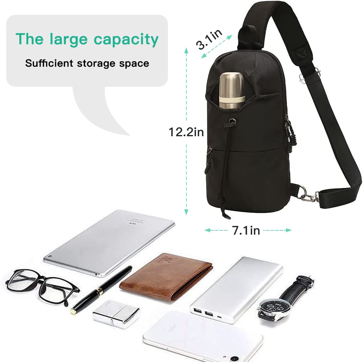 plufahci Fanny Packs Chest Crossbody Sling Backpack Bag for Women Men With Water Bottle Holder Adjustable Strap Suitable For Outdoors Traveling Hiking(Black with Bottle Holder
