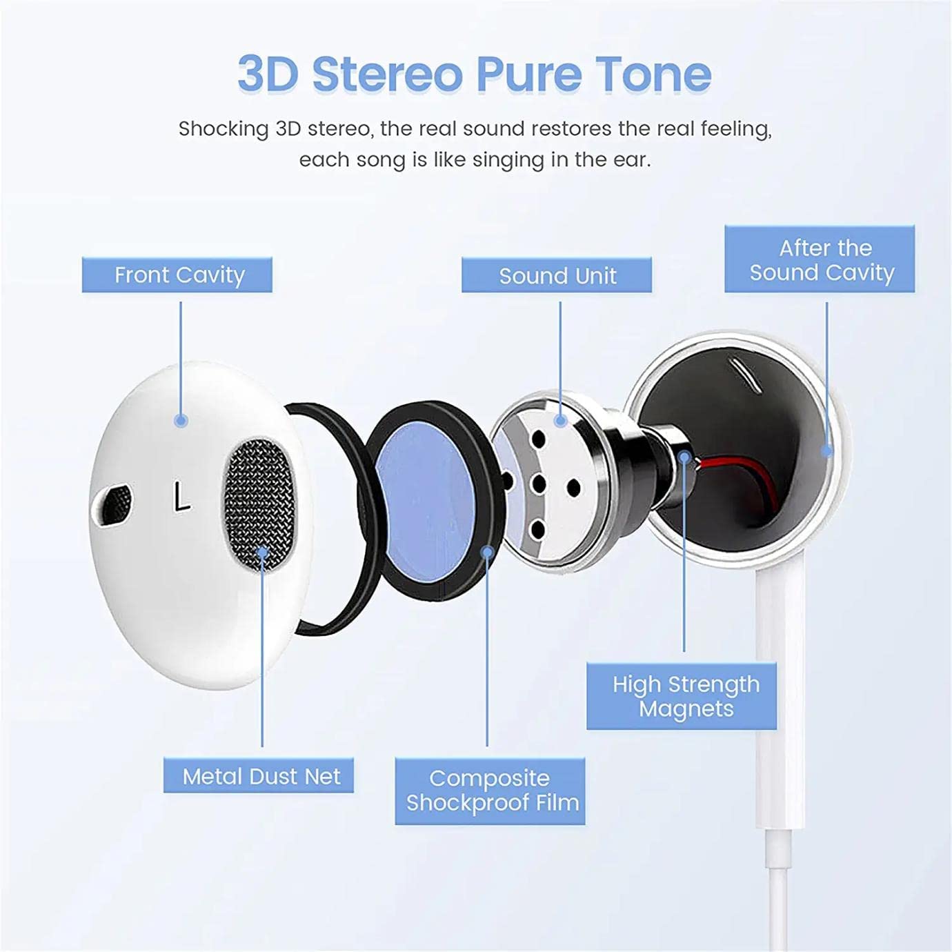 【High-Quality Sound】The iPhone Earbuds uses 100% copper core to provide lossless digital sound quality, supports 48KHz and 24-bit audio output, Built-in premium-shockproof membrane and sound devices with better sensitivity and noise reduction than conventional headphones can achieve good sound quality even with normal devices.
