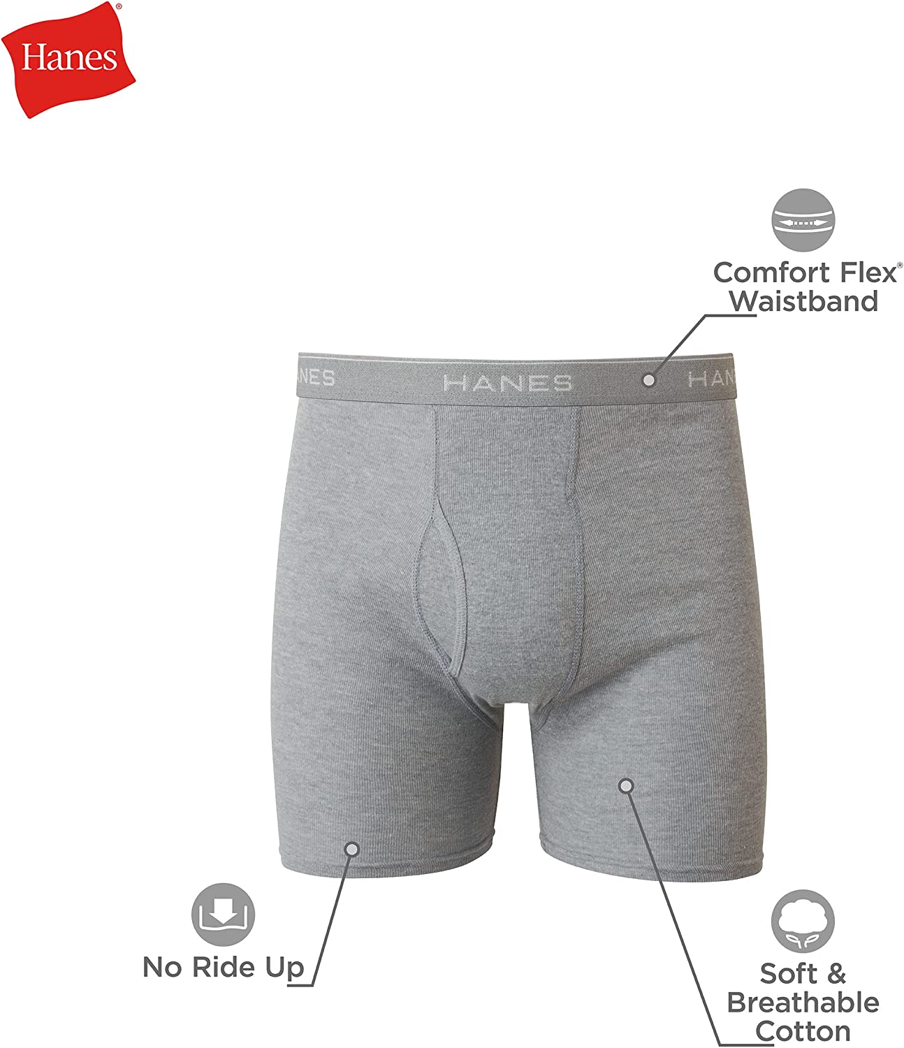 This men's boxer briefs multipack is made from 100% cotton that's soft and breathable for everyday comfort (heathered styles are a cotton-rich blend). Our moisture-wicking underwear is designed with Cool Comfort® fabric that helps keep you cool no matter what your day brings. Our experts also designed these men's underwear with no-ride-up construction and a Comfort Flex® waistband that stretches and moves with you. Plus, you can throw them right in the washer on laundry day. We also love how these tagless boxer brief underwear sets are available in multiple color and pack options, so you can choose the one that works best for you.