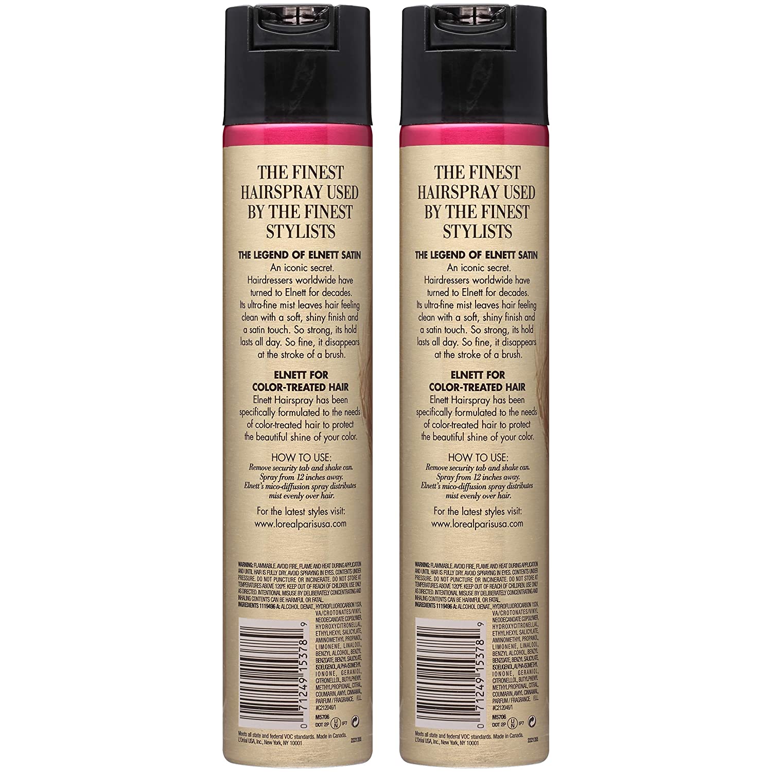 L'Oreal Paris Hair Care Elnett Satin Extra Strong Hold Hairspray For Color Treated Hair, Long Lasting Plus Humidity Resistant Hair Spray, 11 Ounce (2 Count)