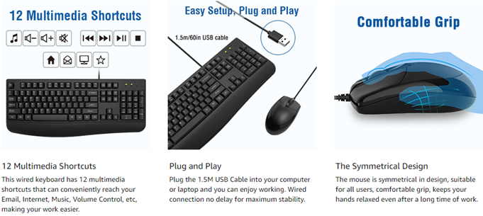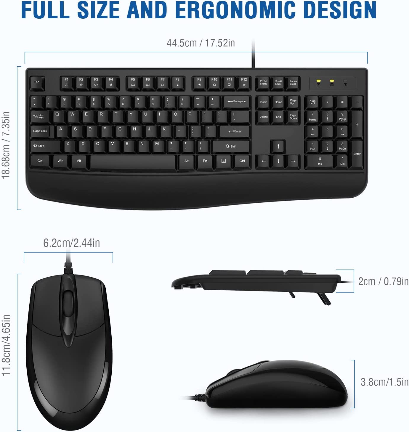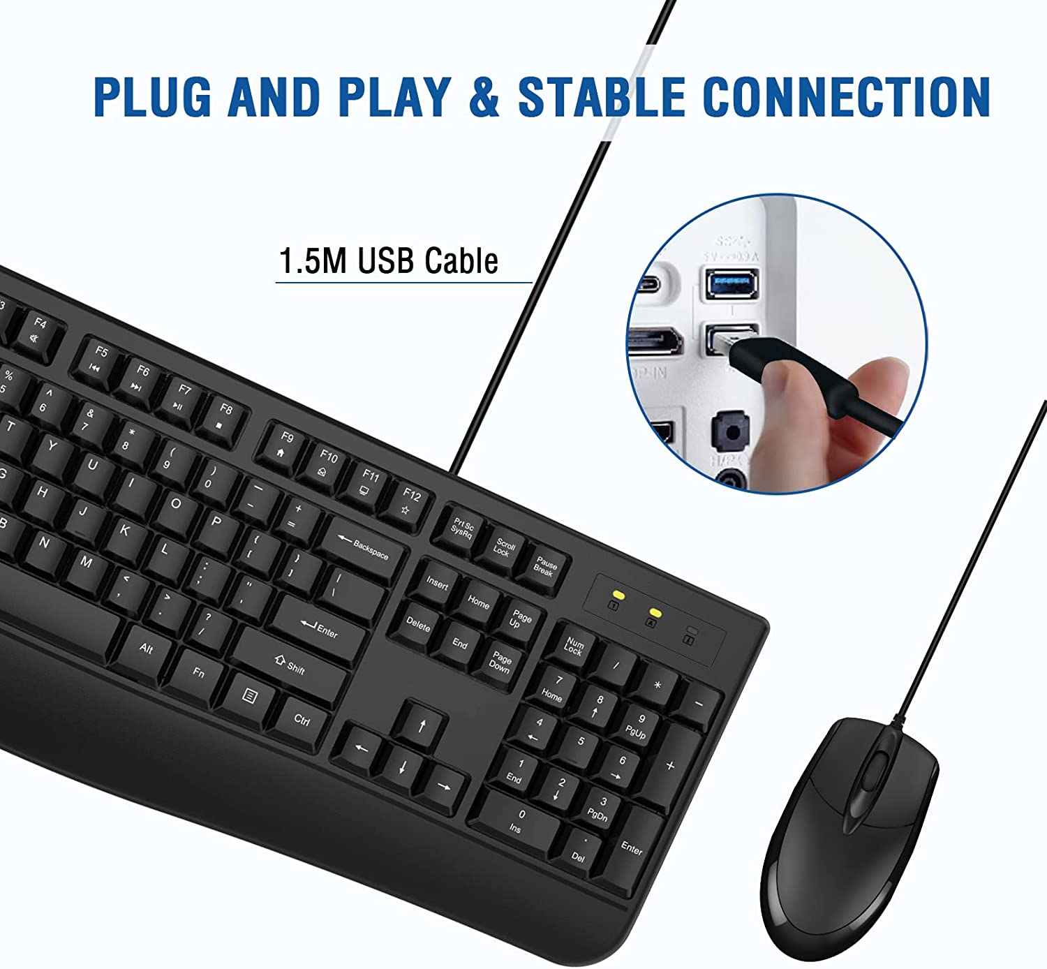 - 【PLUG & PLAY AND STABLE CONNECTION】This wired keyboard mouse combo is plug and play, no needed install any drivers, wired connection can provide more stable signal input than wireless connection, more responsive typing.