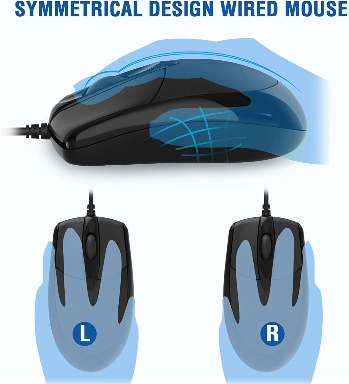 - 【OPTICAL WIRED MOUSE】This is a optical wired mouse that can works well on a smooth surface even without a mouse pad. The mouse is symmetrical design,suitable for all users, very comfortable to hold, keeps your hands relaxed even after long time of work.