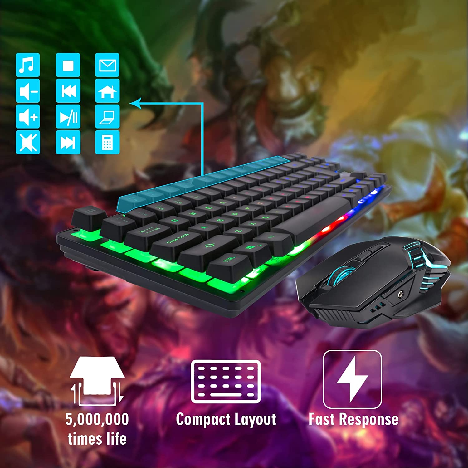 ★Wide Compatiblity --- This wireless gaming keyboard and mouse combo is compatible with Window X 7/8/10 Linux Surface Fire Androd Macbook iMac(MacOS can support the FN multimedia keys) Xbox one X PS4 PS5 Switch Google Resberry Pi.