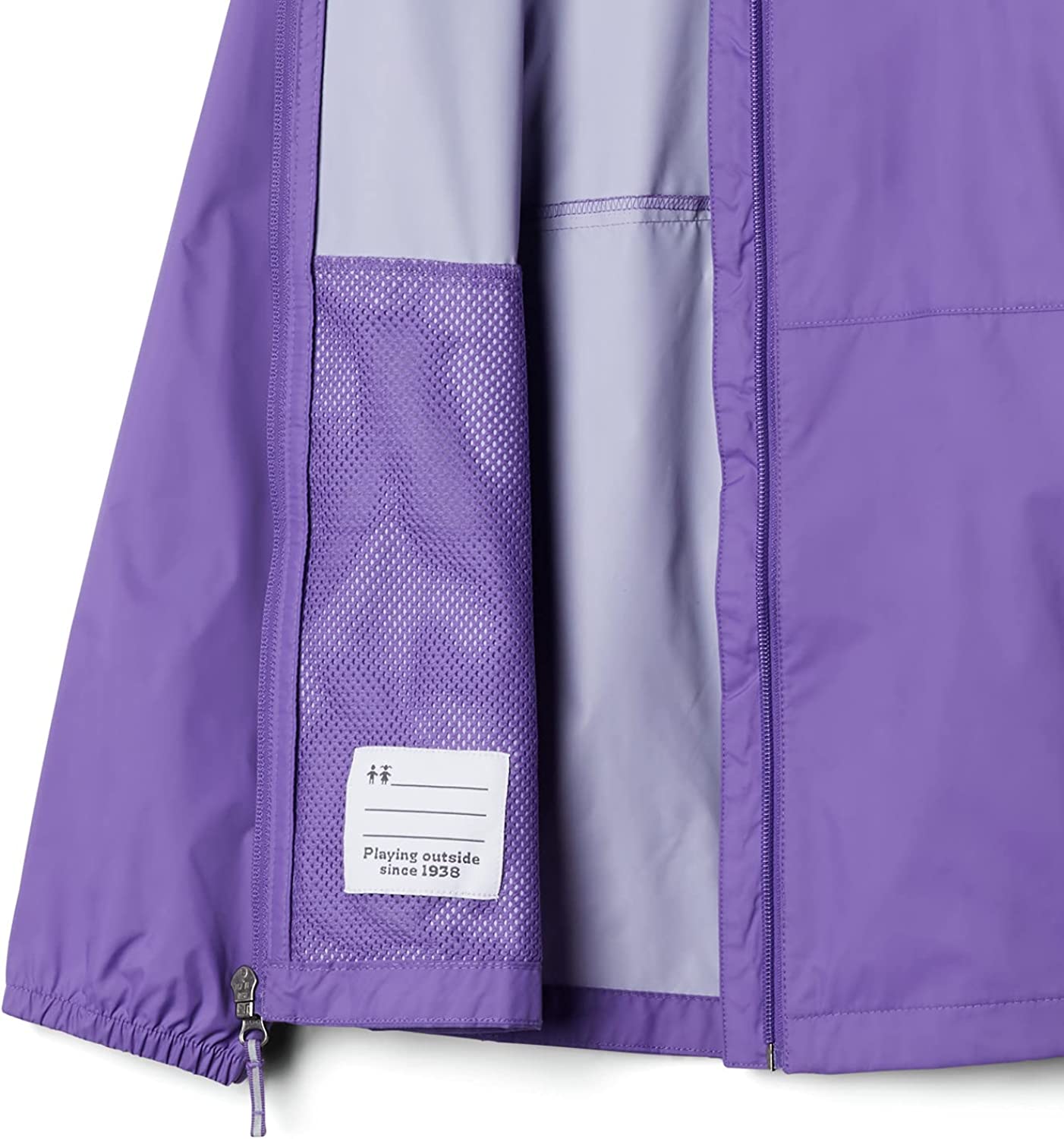 - COMFORTABLE RAIN JACKET: The Columbia Girl's Switchback II Jacket is a hooded waterproof rain coat with elastic cuffs, and a drop tail, designed to keep your child cozy and dry.