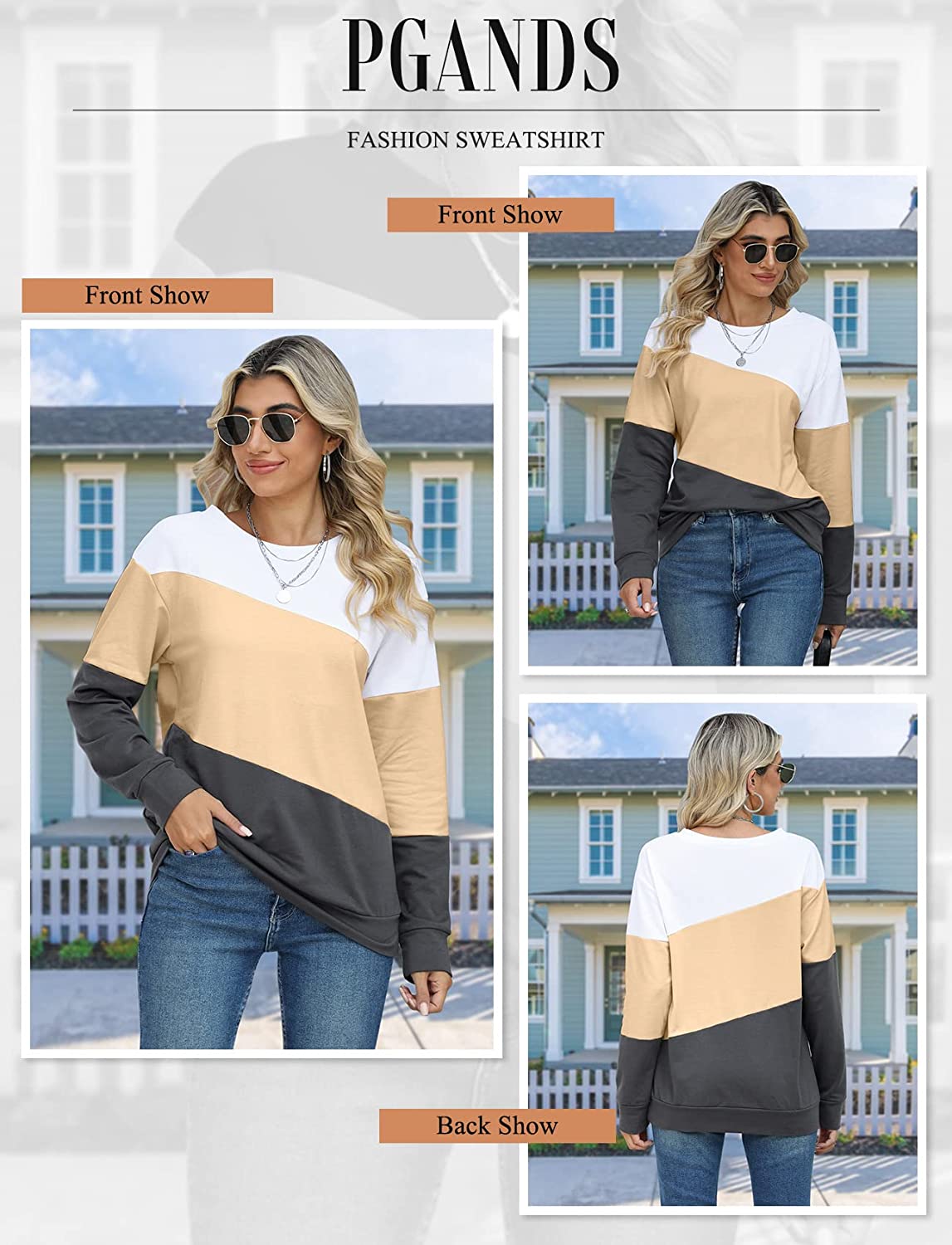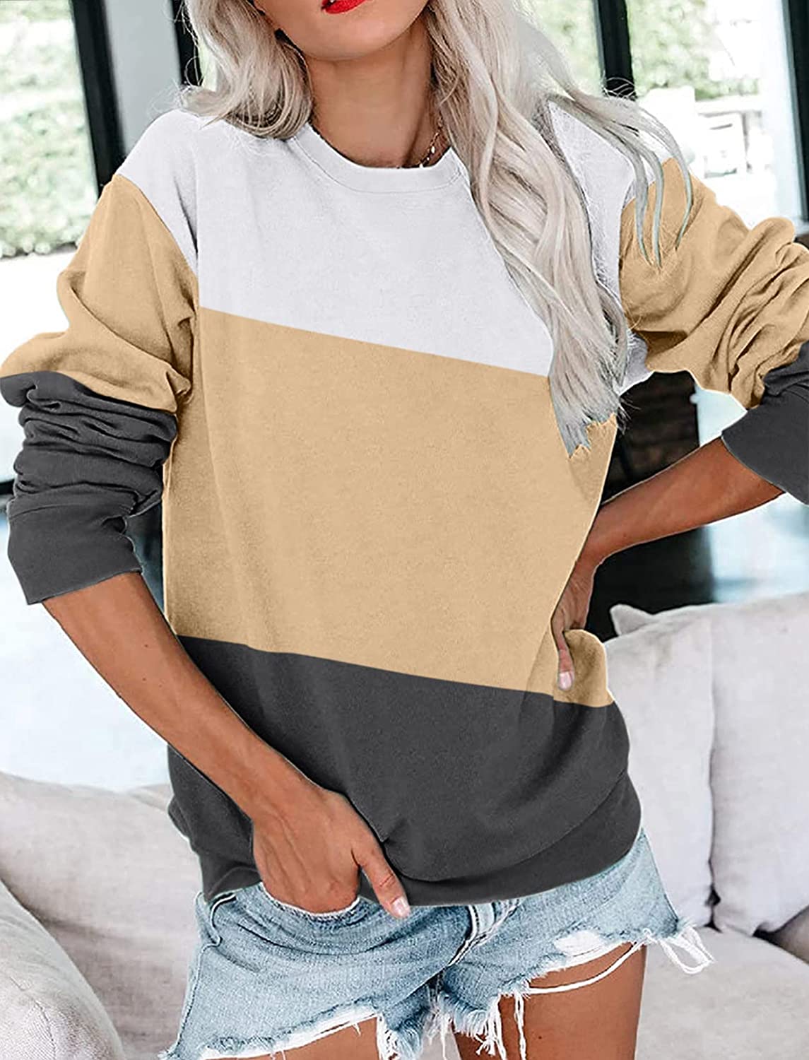 【Easy To Match】This eye catching fashion color block fall tops is designed for women and juniors. The material is not thin and thick, easy pair it with skinny jeans/ jeans/ leggings/ coat/ jackets/ sneakers/ boots/ heels,etc. Rock this sweatshirts hoodie with the pair of jeans and sneakers for a charming choice!