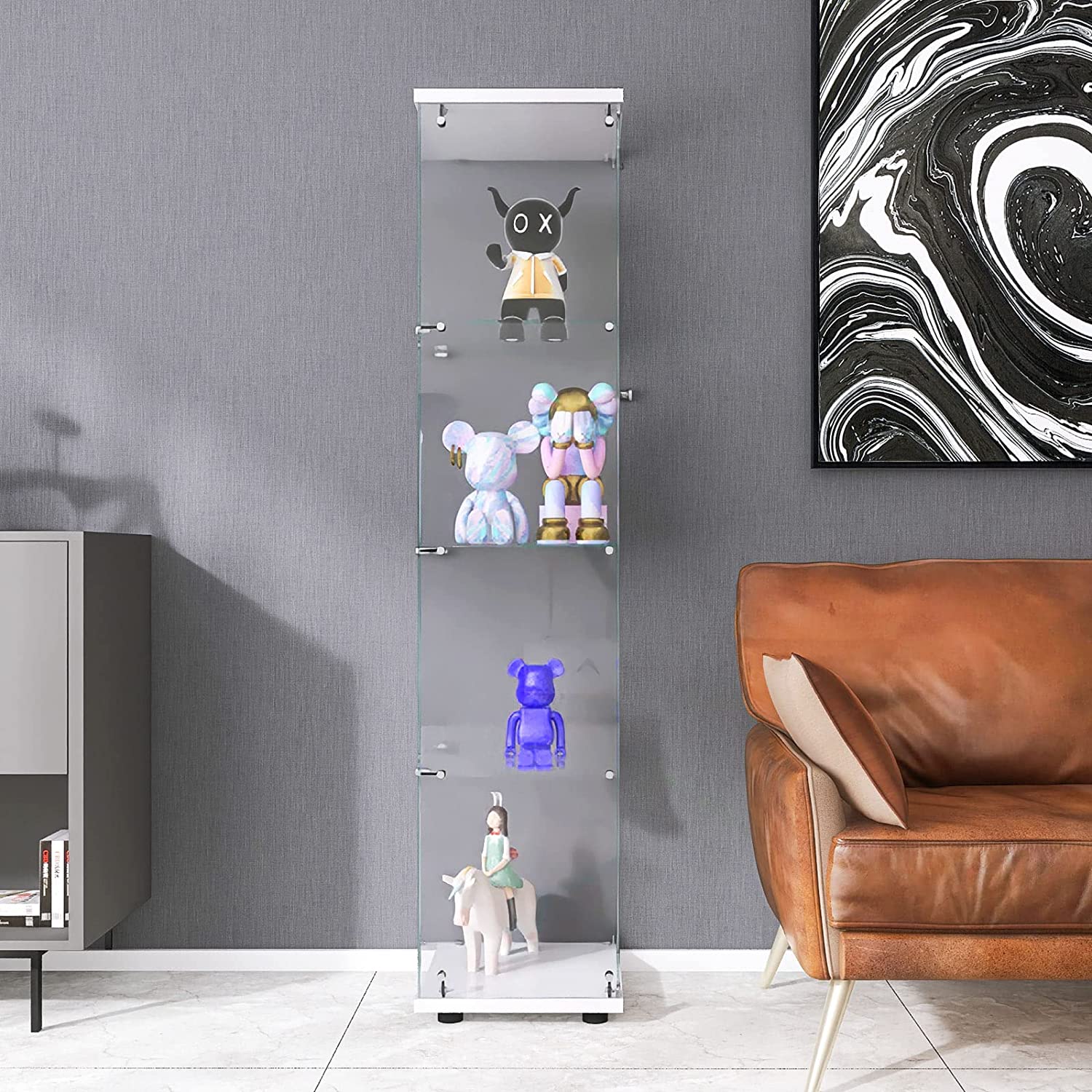 Free Disassembled: The partition board of glass curio cabinet can be disassembled at will to facilitate the display of large items. The glass display case allows you to place freely without restriction, giving your toys a warm home.