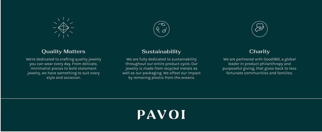 ✦ SUSTAINABILITY ✦ We’re committed to protecting the planet. That’s why every piece of PAVOI jewelry is crafted with 100% recycled materials and we package in 99% recycled and compostable materials. We are proudly carbon-neutral and completely offset our plastic consumption by removing over 275,000 plastic bottles from our ocean annually. Learn more about our sustainability efforts here.