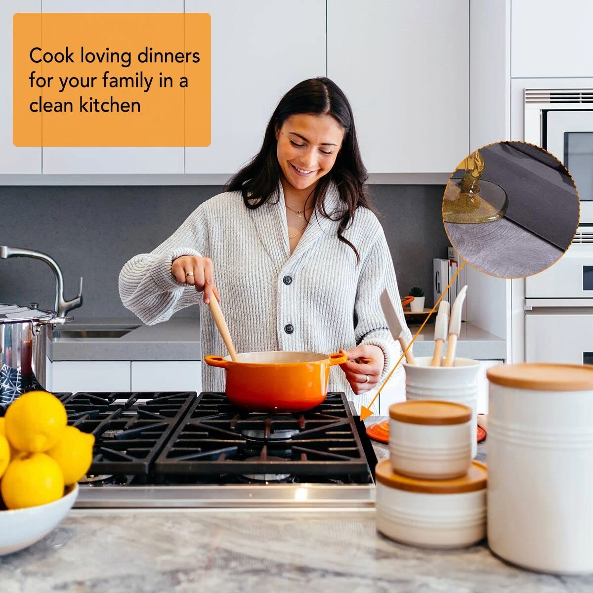 - 【Heat Resistant】We use 2022 newly improved and upgraded food-grade silicone material, the gap cover withstands up to 446 degF (230 degC), does not melt or warp. PLEASE Avoid direct contact with flame/pot.