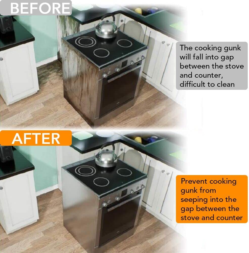 - 【Cover The Gap】Our stove gap covers help you say goodbye to that hard to clean gunk and debris that gets stuck in the gap between your stove and counter, which helps in keeping the cover clean and stain free