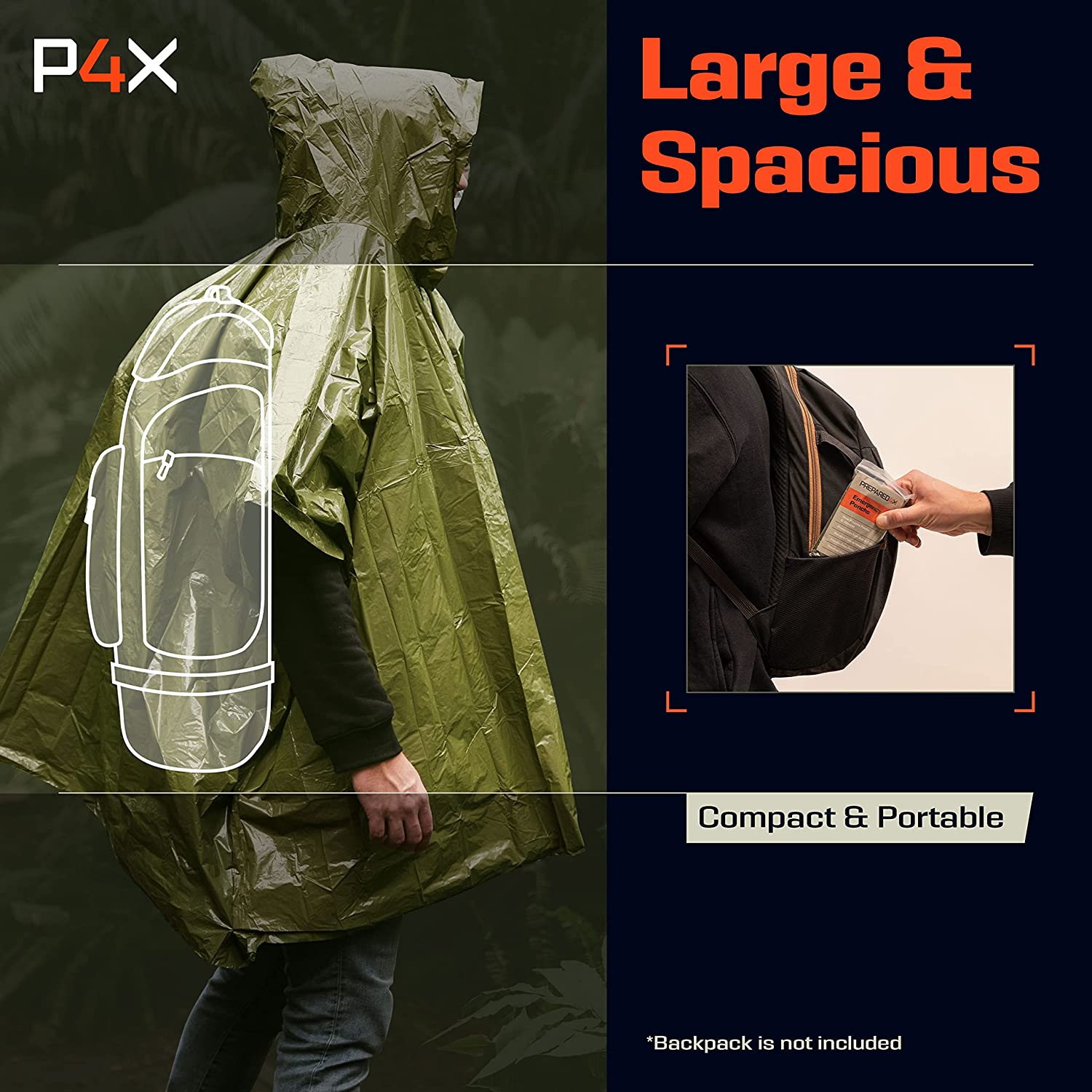 • NO MORE CLUTCHING EMERGENCY BLANKETS – Keep your hands free with our patent-pending Prepared4X wind-resistant and waterproof blanket poncho hybrid because we’ve combined the warmth of a mylar blanket with the mobility of a poncho.