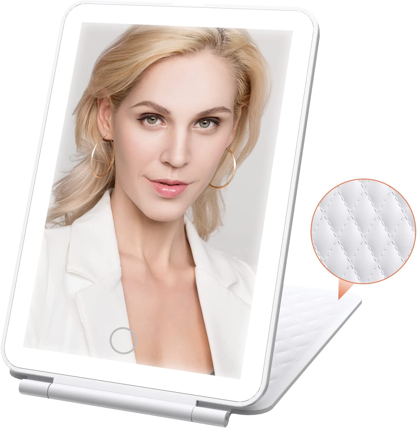 • ?️【??????? ???? ??? ??????】Our compact travel mirror with light is designed ultra slim, lightweight and portable.The overal size of this vanity mirror is about 5.1 x 7.6 inch, 0.57 inch thickness when folded, only 0.57 pounds, similar as iPad mini size. It's easy to slip this light up mirror into your handbag or lugguage, and you can take it everywhere for perfect travel use conveniently.