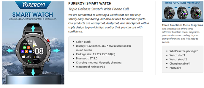 - ⌚【MULTI -FUNCTION LIFE ASSISTANT】- Equipped with 1.32"HD Extra-large full touch color screen and 128MB large memory, compatible with Android 6.0/iOS 10.0. This smartwatch comes with multiple basic functions, such as weather, music control, timer, alarm clock, sedentary reminder, dial setting, step counting, and so on, which makes your lifestyle more convenient and effective.