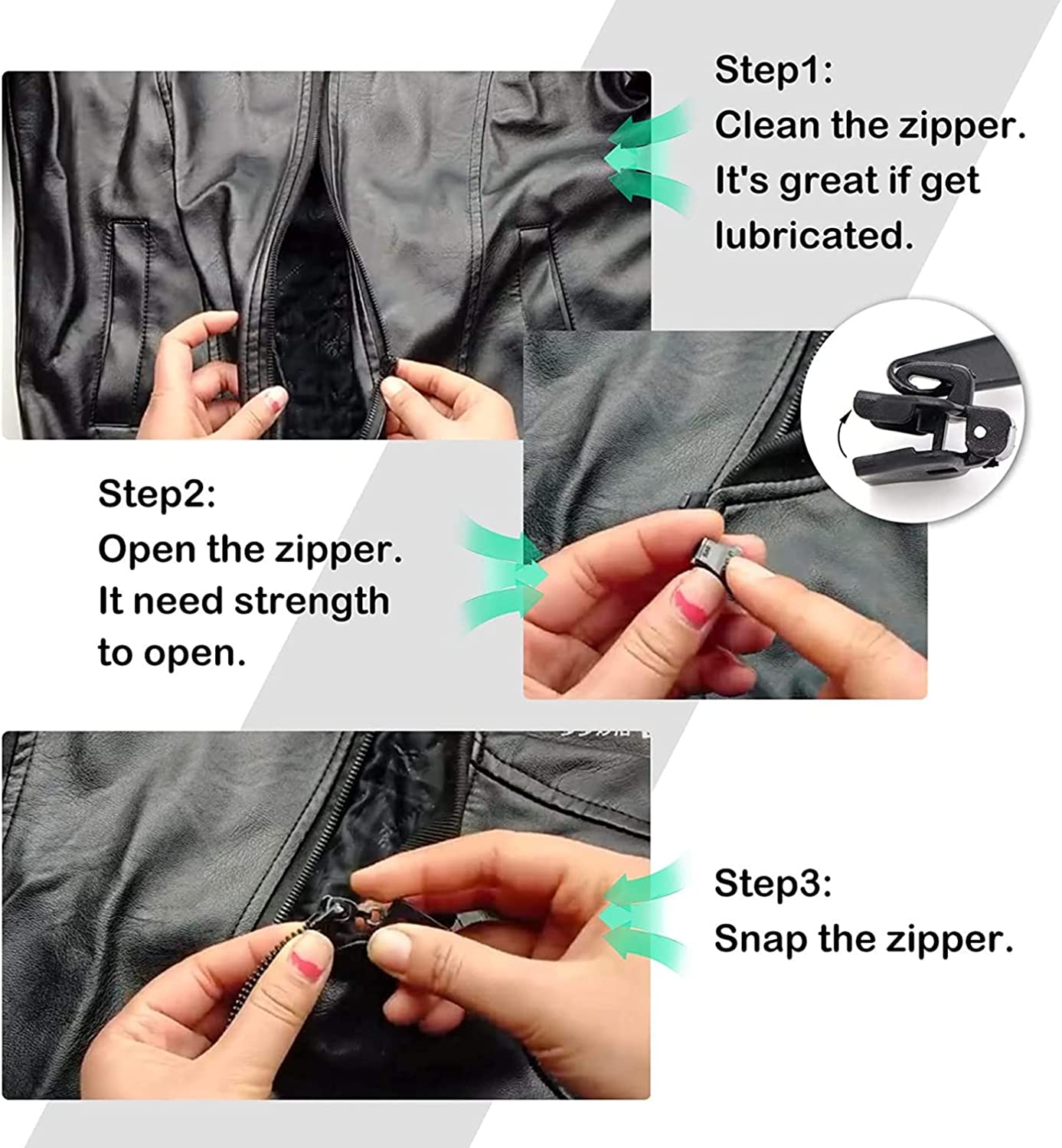 6Pcs Fix Zip Puller 3 Sizes Universal Instant Fix Zipper Repair Kit, Replacement Zip Slider Teeth Rescue Zippers Sewing Clothes
