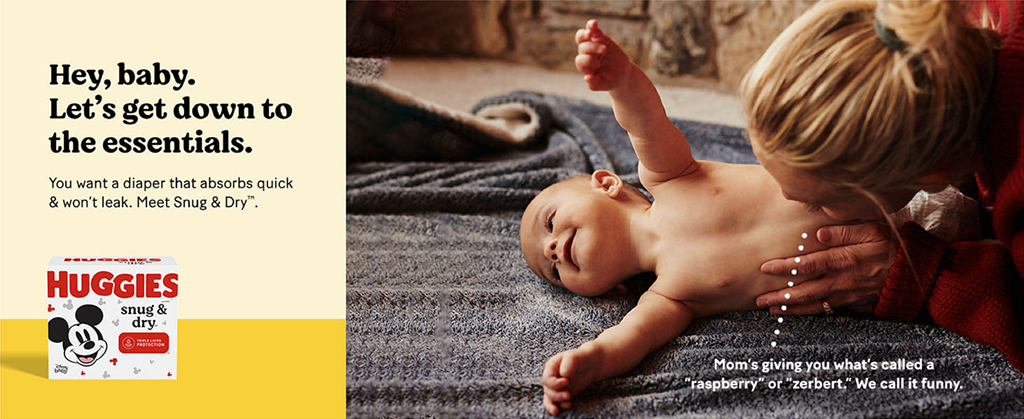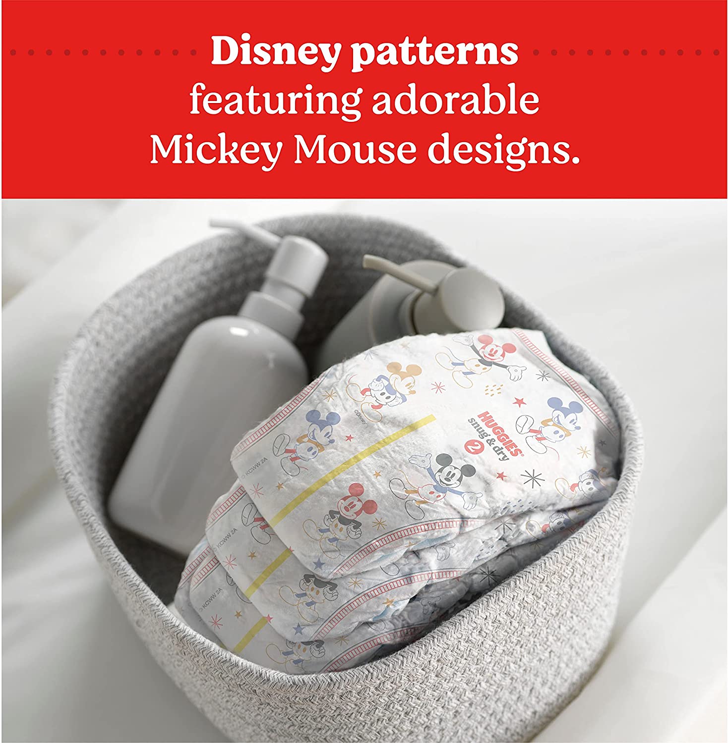 Deliver up to 12 hours of long-lasting protection, day or night, for your baby with Huggies Snug & Dry Baby Diapers. Snug & Dry features Triple Layer Protection that absorbs wetness in seconds and separates moisture from your baby's skin. These disposable baby diapers are great for when your baby is sleeping, crawling or walking because they have a contoured shape for better leakage protection. The stretchy waistband provides a secure fit and extra comfort for your baby. Each diaper also comes with a wetness indicator, a yellow line that changes to blue when wet, so you can always know when your little one needs a diaper change. Snug & Dry contains no harsh ingredients, as these baby diapers are as well as free of fragrances, lotions, parabens, elemental chlorine and natural rubber latex. Showcasing exclusive Disney Mickey Mouse designs as cute as your baby, Snug & Dry Diapers are available in sizes Newborn (up to 10 lbs), 1 (8-14 lbs), 2 (12-18 lbs), 3 (16-28 lbs), 4 (22-37 lbs), 5 (27+ lbs) and 6 (35+ lbs). Don't get caught without Huggies diapers! Sign up for Subscribe & Save to ensure you always have Snug & Dry Diapers on hand. Join Huggies Rewards+ powered by Fetch to get rewarded. Earn points on Huggies diapers and wipes, in addition to thousands of other products to redeem for hundreds of gift cards. Download the Fetch Rewards app to get started today! (*sizes 3-6)