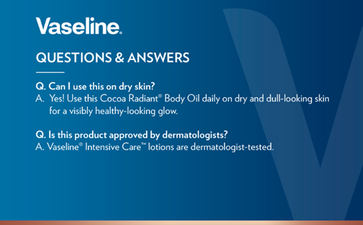 • DAILY SKIN CARE: Use Vaseline Intensive Care Cocoa Radiant Body Oil as your daily body oil for dry skin and stressed skin; Just apply to your skin to feel the difference