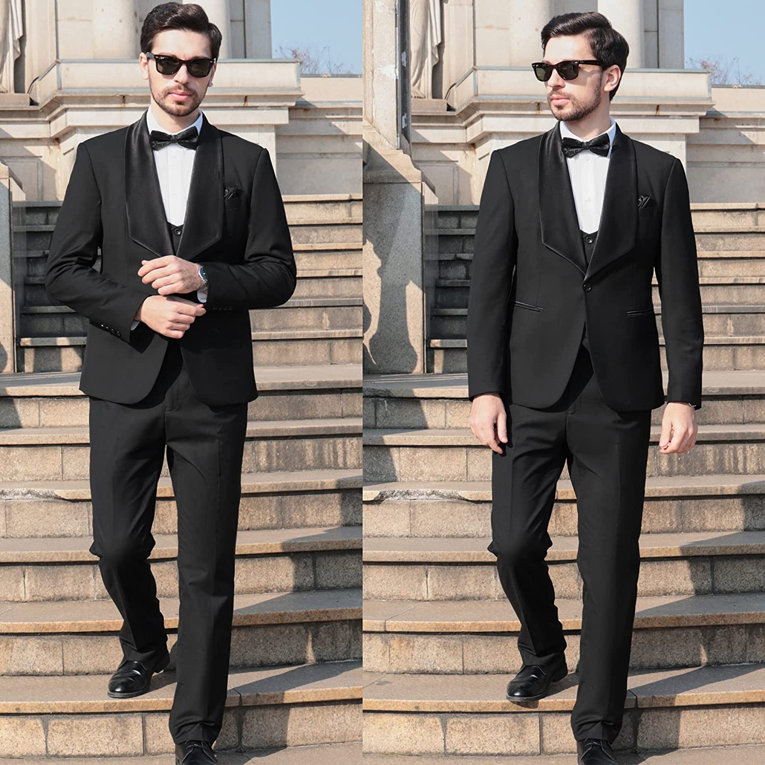 EXQUISITE WORKMANSHIP: Clashing Satin Shawl Collar,Upscale Button and Cut With 3D Draping. The Slim Fit Style Makes You Look Modern and Sharp.