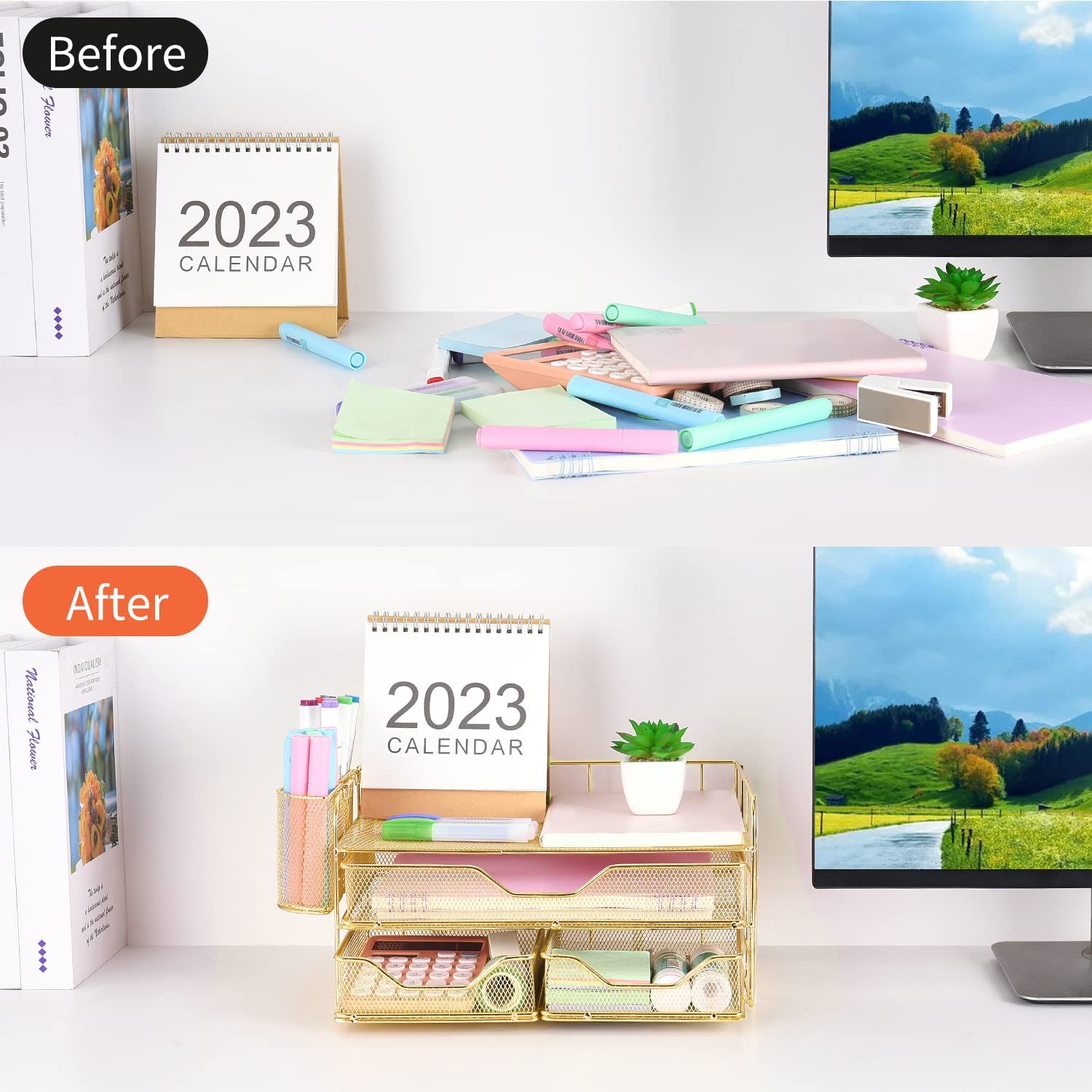?【No assembly required】NO ASSEMBLY,No need to meet with the painful assembly, enjoy the calm work and good life,The office desk accessories perfect addition to any desk.