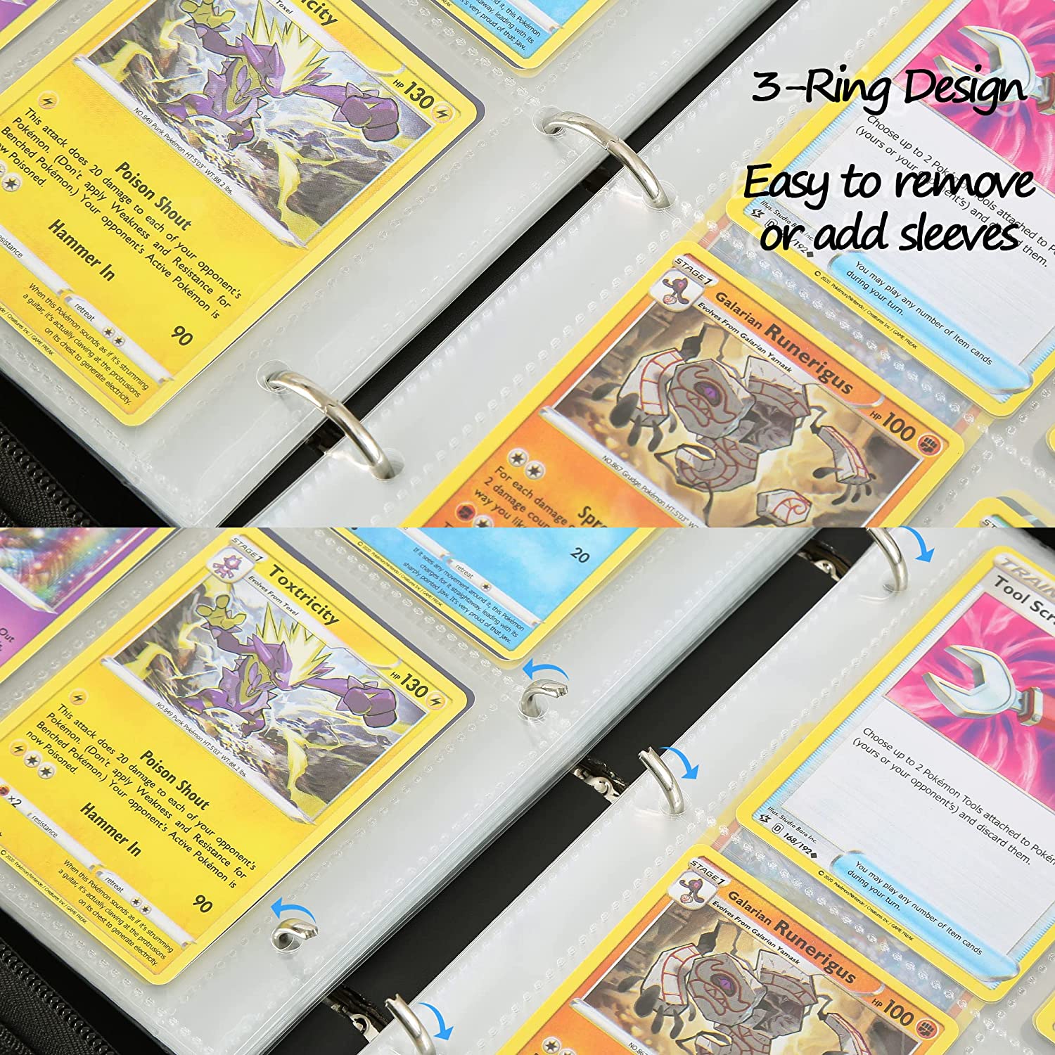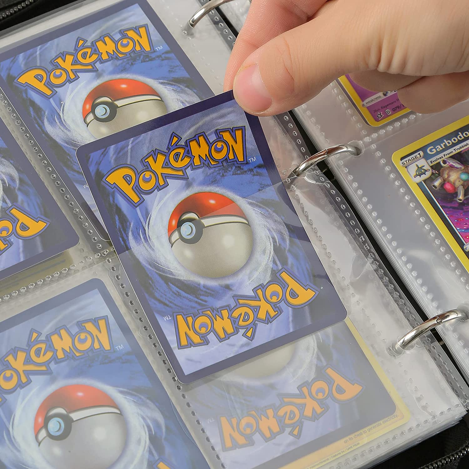 ⭐This trading card binder is made of waterproof PU leather, carbon fiber design, resistant to dirt, and scratch-resistant. Card sleeves are made of polypropylene, visible, waterproof, durable, and nice to protect your cards from fading and stain.