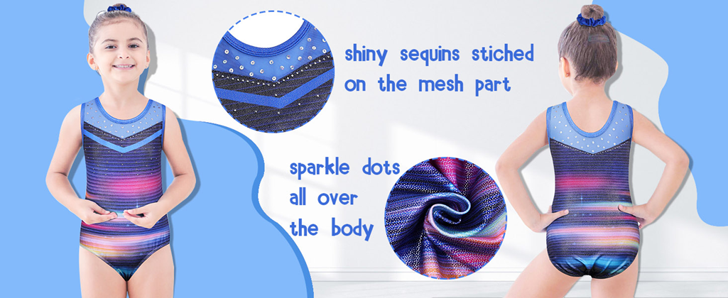 BAOHULU Gymnastics Leotards for Girls Toddlers Kids Sparkle Sequins Mesh Top Dancewear