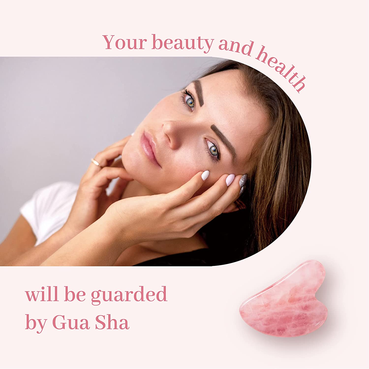 • Natural Material: Gua sha face massager made by 100% natural pemium rose quartz, which is beneficial minerals to skin beauty and body health. Guasha massage tool is long lasting, super easy to care, static free.