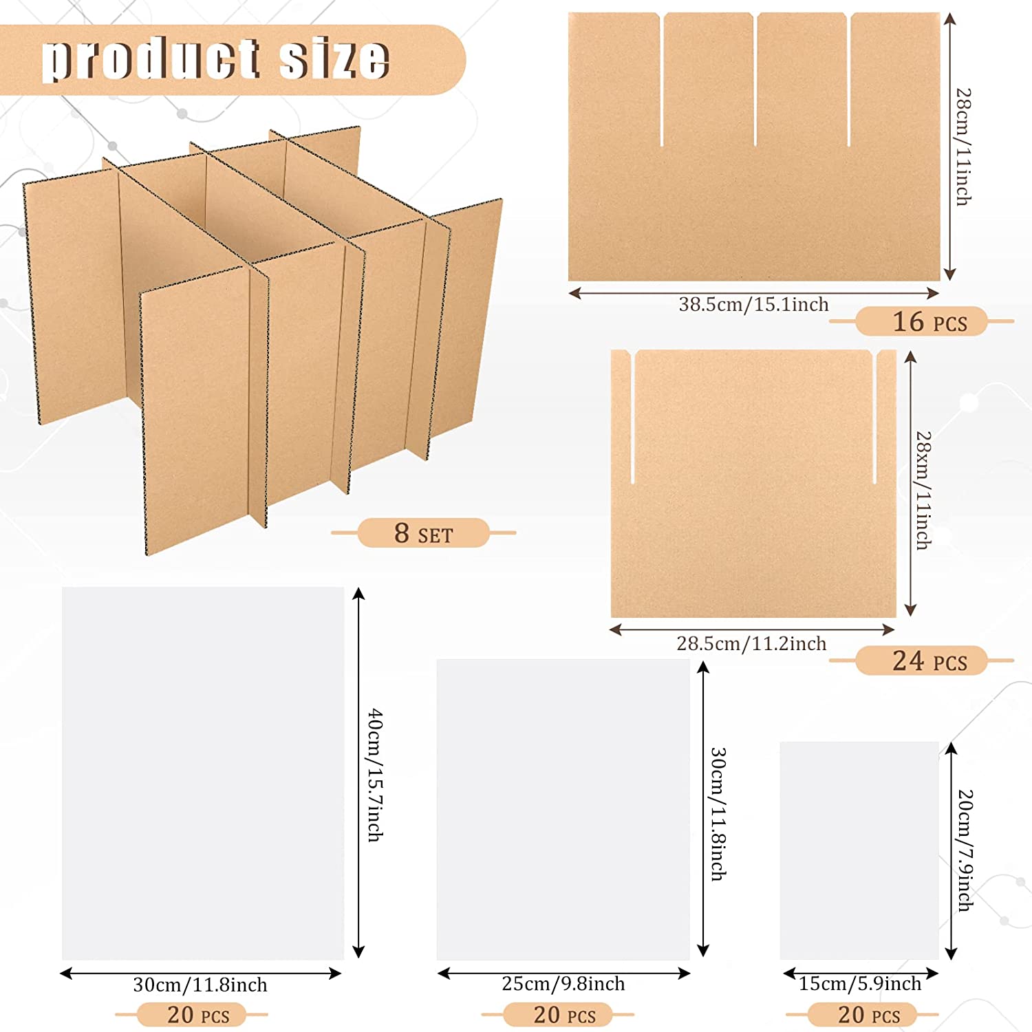What You Will Receive: you will receive a dish packing kit, including 16 pieces of 15.16 x 11.02 inches/ 38.5 x 28 cm glass dividers, 24 pieces of 11.22 x 11.02 inches/ 28.5 x 28 cm glass dividers, 20 pieces of 5.91 x 7.87 inches/ 15 x 20 cm foam pouches, 20 pieces of 9.84 x 11.81 inches/ 25 x 30 cm foam pouches, 20 pieces of 11.81 x 15.75 inches/ 30 x 40 cm foam pouches; They suit for 16 x 12 x 12 inches boxes; Please check the box size before purchasing
