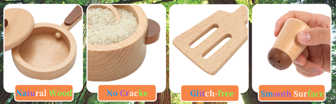 - 【Gift Package Design & Smooth Surface】: To better suit for gifting, we newly designed a colorful package for the wooden play food set. Great workmanship makes the kids kitchen accessories set smooth in surface and rounded in edge, which make the kitchen set for kids a superior gift for birthday, Christmas and any other festival.