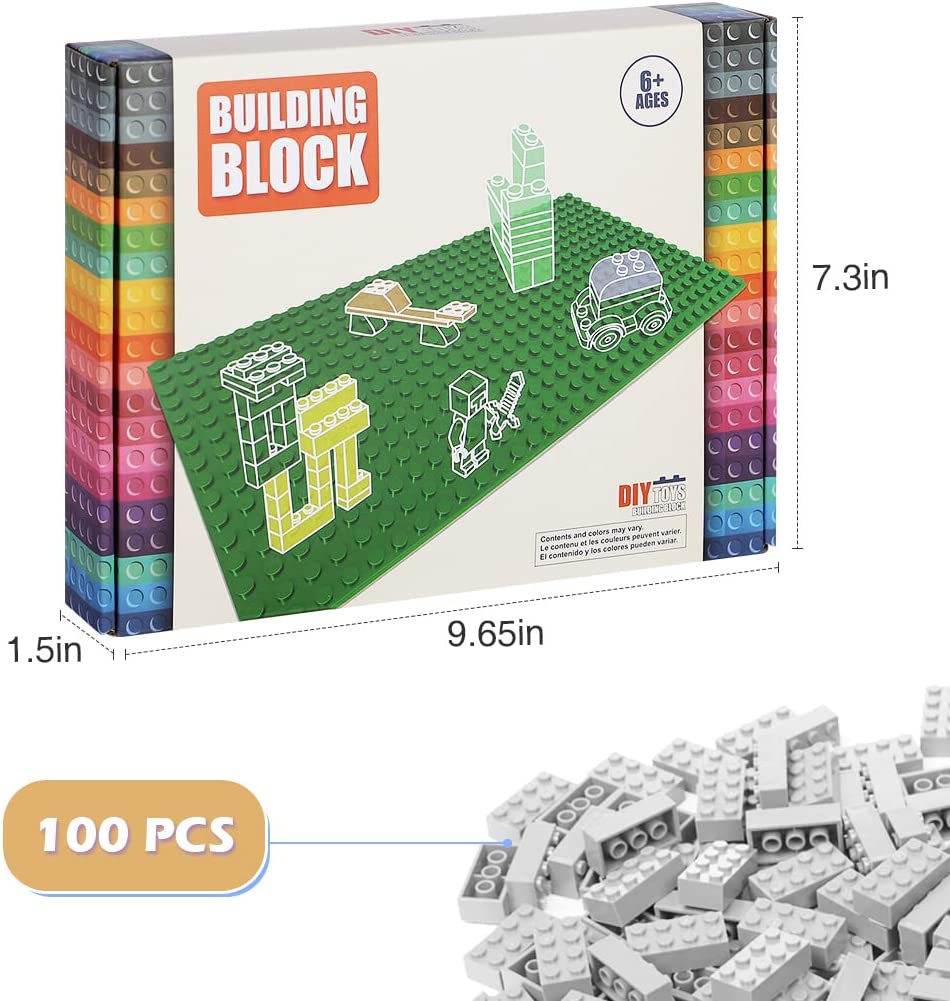 Unirolic Classic Building Bricks, 100 Piece 2x4 Building Blocks STEM Creative Building Toys Compatible with All Major Brands, MOC Building Bricks DIY Play Set for Kids(Light Grey)