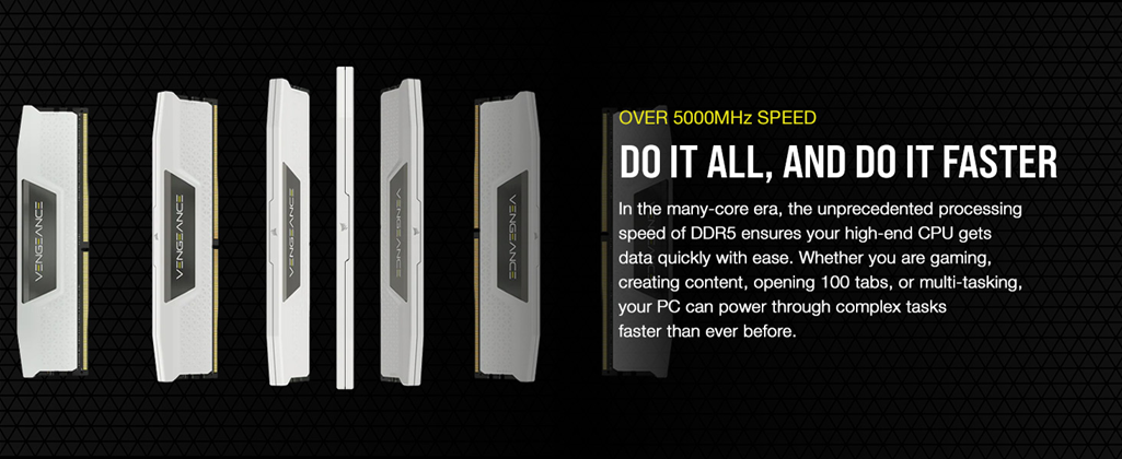 • Do it All, and Do it Faster: As modern CPUs feature more and more cores, the unprecedented speed of DDR5 ensures your high-end CPU gets data quickly, enabling faster processing, rendering, and buffering than ever before.