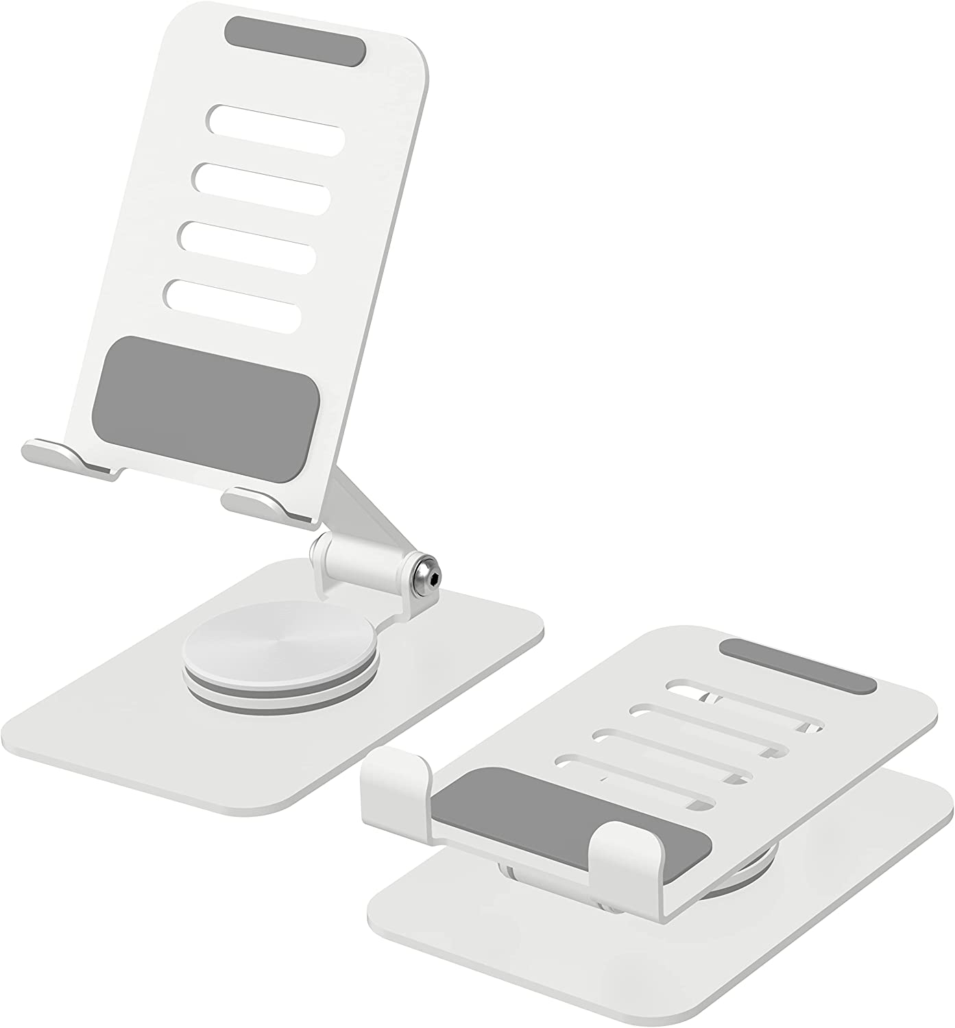 [Multiple Angle Adjustment] : The height and angle of this 360 rotation phone stand can be adjusted, this foldable phone stand provides you comfortable view and reduce neck & back strain